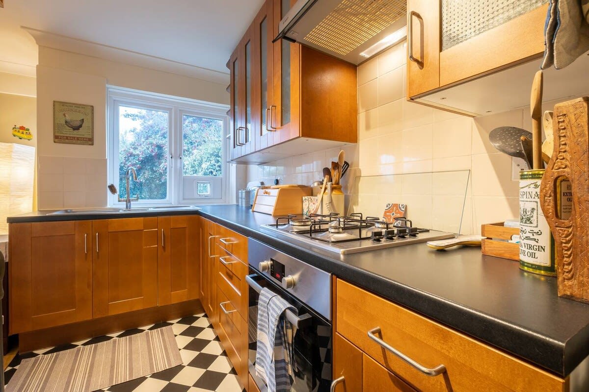 Feel at home in this charming one bedroom apartment with a stunning private garden and great views over Brighton. The bright, light lounge has a large, comfy L-shaped sofa which opens up onto the kitchen and dining area creating a lovely, light sociable space that's perfect for relaxing, plus double French glass doors that lead out onto the terrace and garden beyond. The garden has a table & chairs to eat outside in the warmer months of the year. This is the perfect place for a peaceful stay
