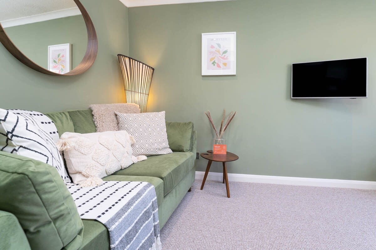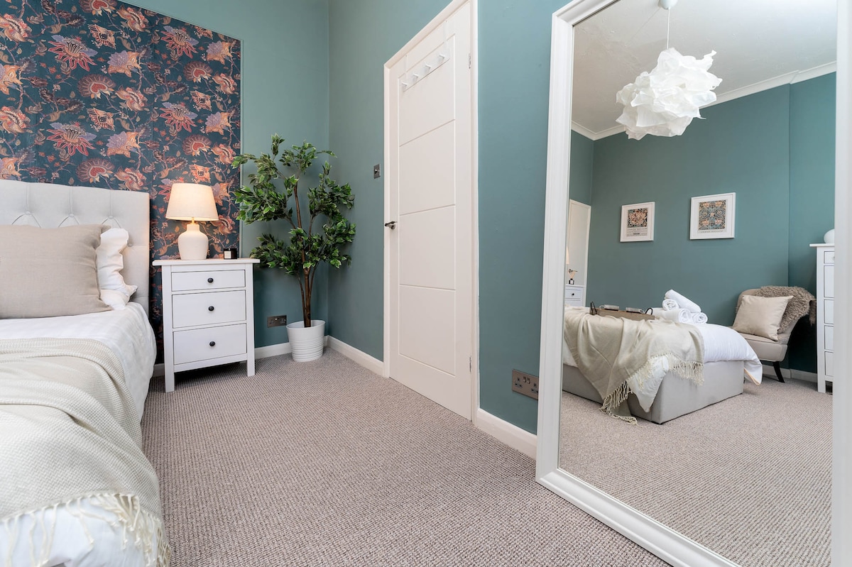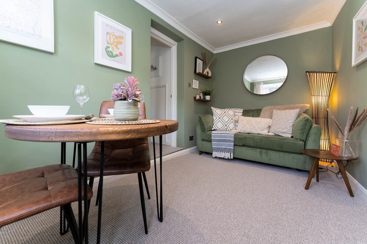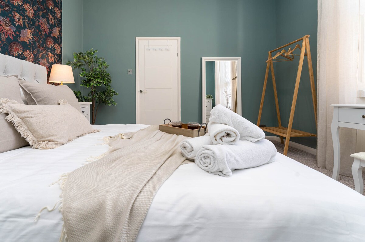 Set in a peaceful residential area surrounded by charming Victorian homes, this beautifully decorated apartment offers the ideal retreat after a day exploring Brighton. It provides the perfect balance between tranquility and convenience; you can stroll to the city centre and the beach, then return to your private sanctuary to unwind and recharge.The bedroom is a serene space featuring a king-size bed with a plush velvet headboard and fresh white linens, along with ample storage, a hair dryer, full-length mirror, and dressing table to cater to all your needs.