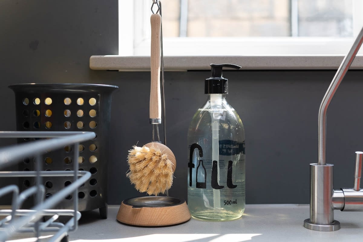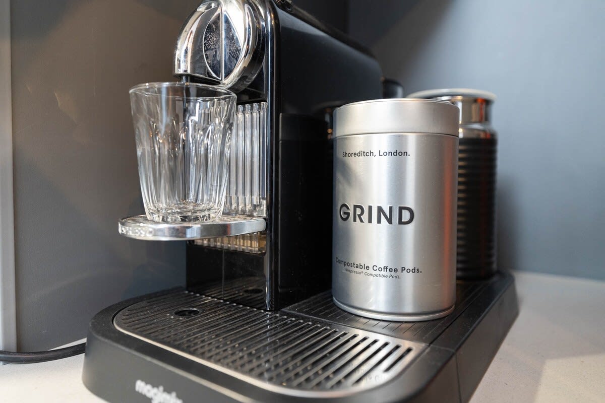 The fully equipped kitchen is designed for ease, offering cookware, crockery, glassware, and essentials, along with a dishwasher, washing machine, tumble dryer, and Nespresso coffee machine.