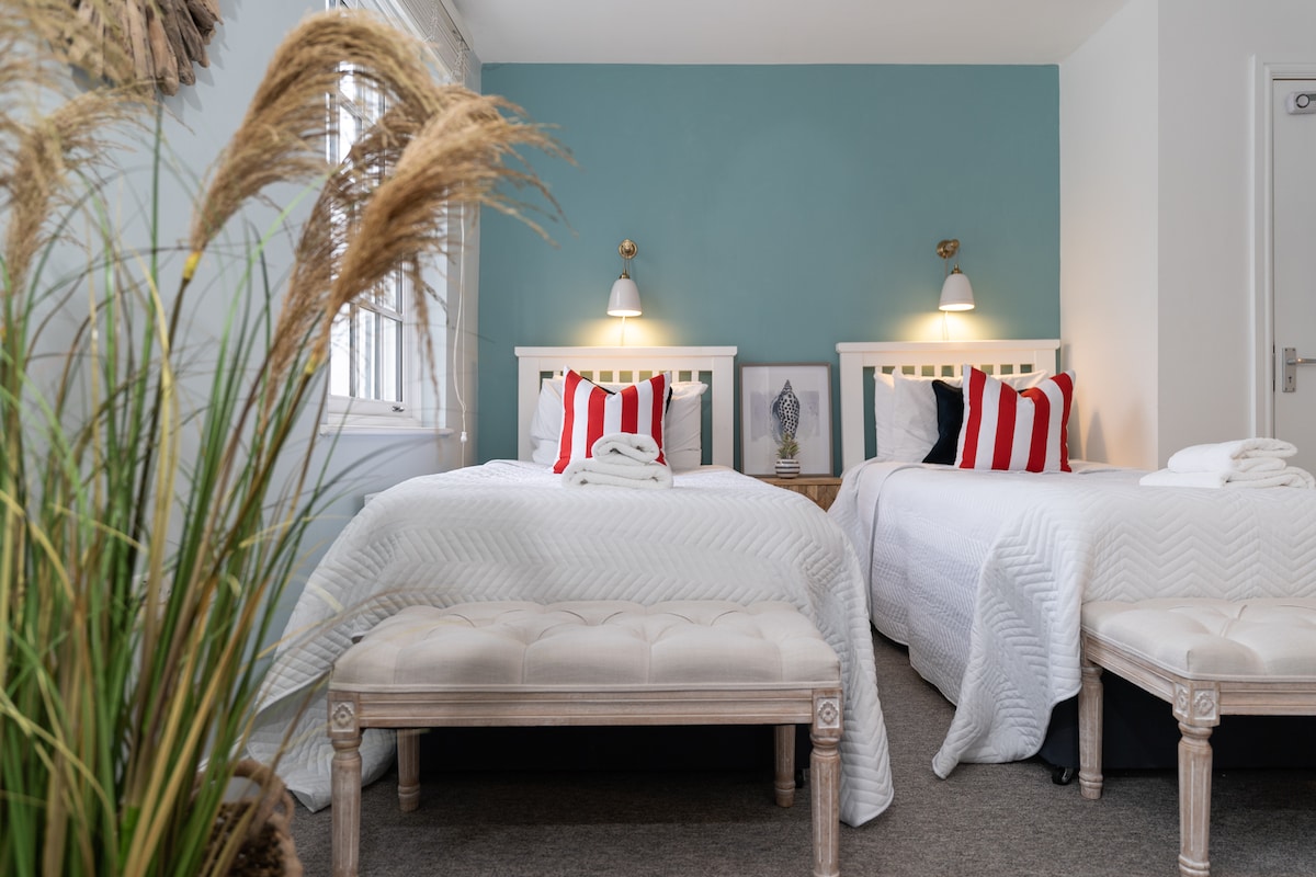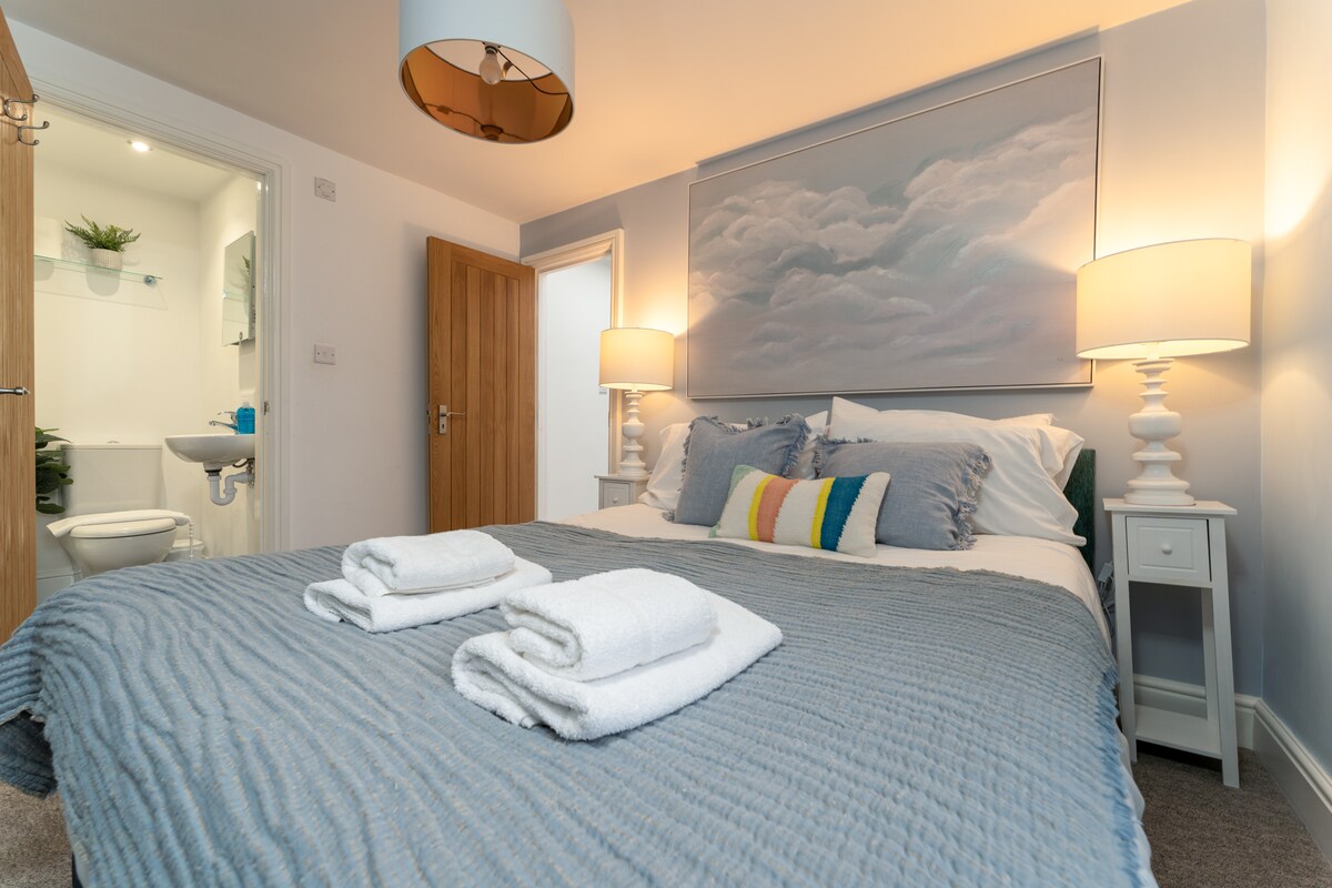 Bedrooms 1 and 2 each feature a comfortable king-size bed and an ensuite bathroom, ensuring privacy and convenience. Bedroom 3 is furnished with another king-size bed, creating a cosy space for relaxation. Bedroom 4 offers two single beds and also includes its own ensuite bathroom.