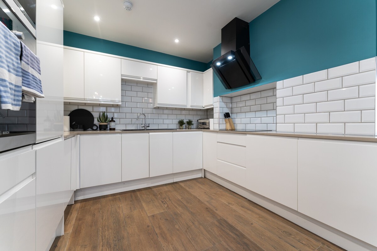 The open plan living/dining area is a sociable space where you can sit together and have drinks, or dinner or simply settle down, chat and unwind with a movie on the Smart TV. It has a modern, contemporary feel with great wall art, a feature light, sofas, chairs, rugs, among others - it truly has a homely vibe.