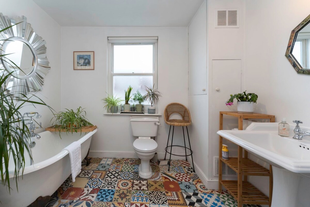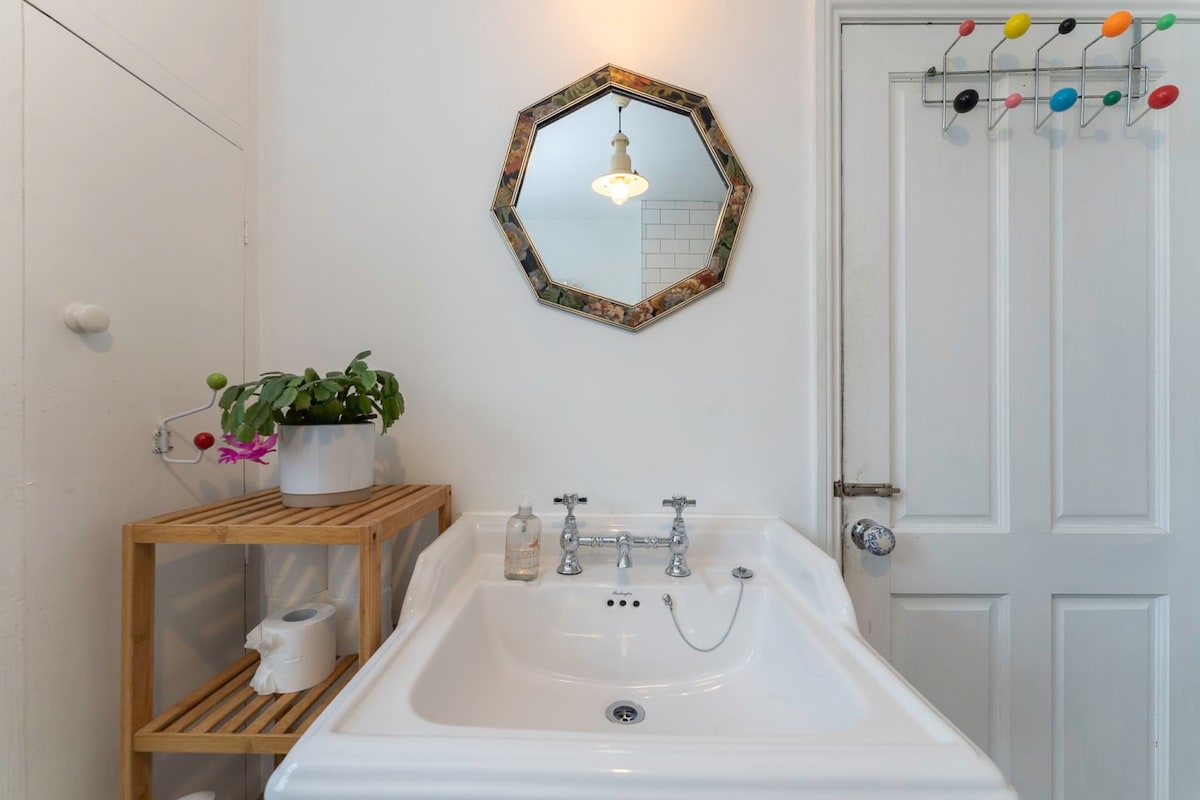 On the first floor you'll discover a tranquil bathroom infused with Moroccan influences. It's a large and funky bathroom with a roll topbath and open shower. Complimentary guest toiletries are provided.
