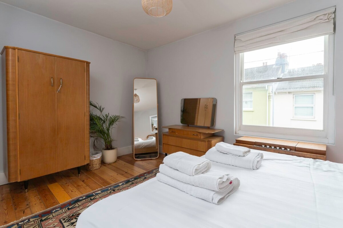 Elegant 3 bedroom house located in the residential area of Elm Grove for a quiet and secluded urban retreat in Brighton. 4 floors, 3 bedrooms (2 with king size beds and one with 2 singles) and a lovely private garden! Admire the great views from the top bedroom over Brighton rooftops. Explore the great local pubs and cafes on your way to the beach, only 30min walk! The lovely garden has everything you need to unwind: BBQ, loungers and outside table! Perfect for family & friends and pets welcome!