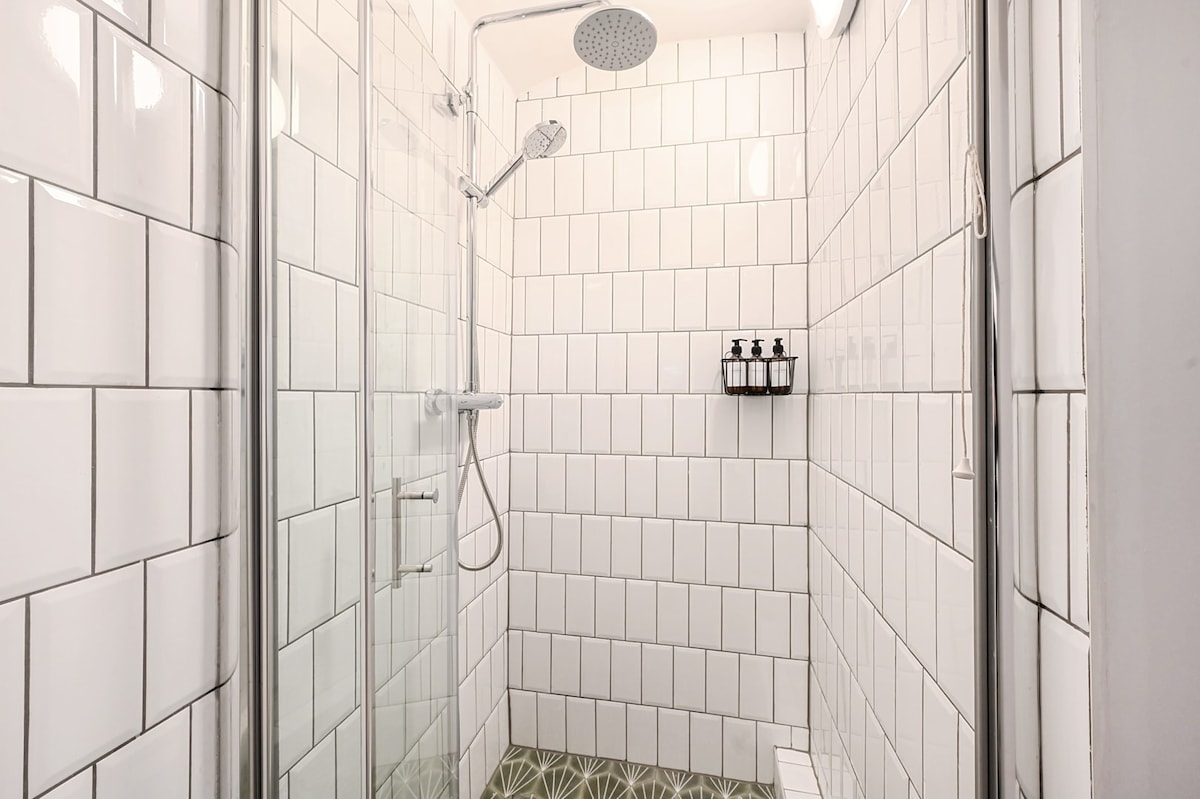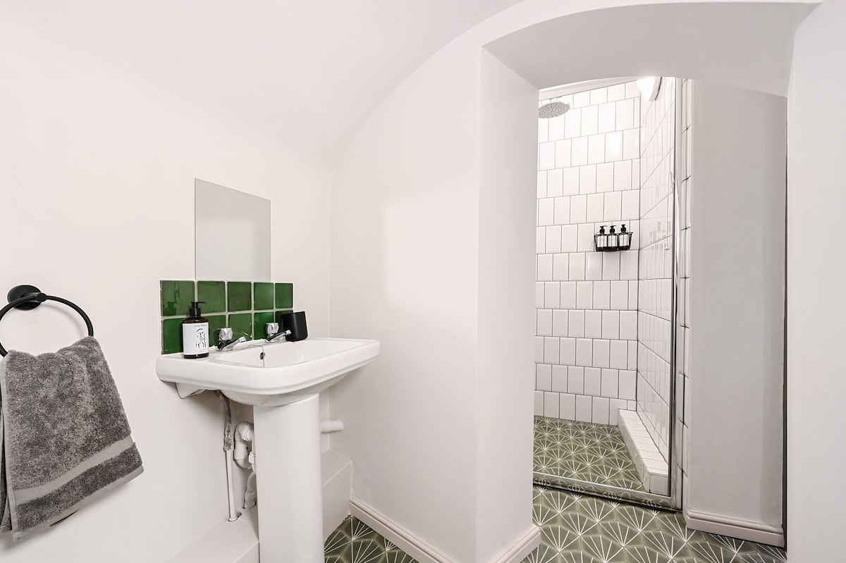 In the sleek, newly renovated bathroom, you'll find a spacious walk-in shower – a serene spot to start or end your day. Guests can also enjoy the use of an iron, ironing board, and hairdryer to keep things neat and comfortable throughout their stay.