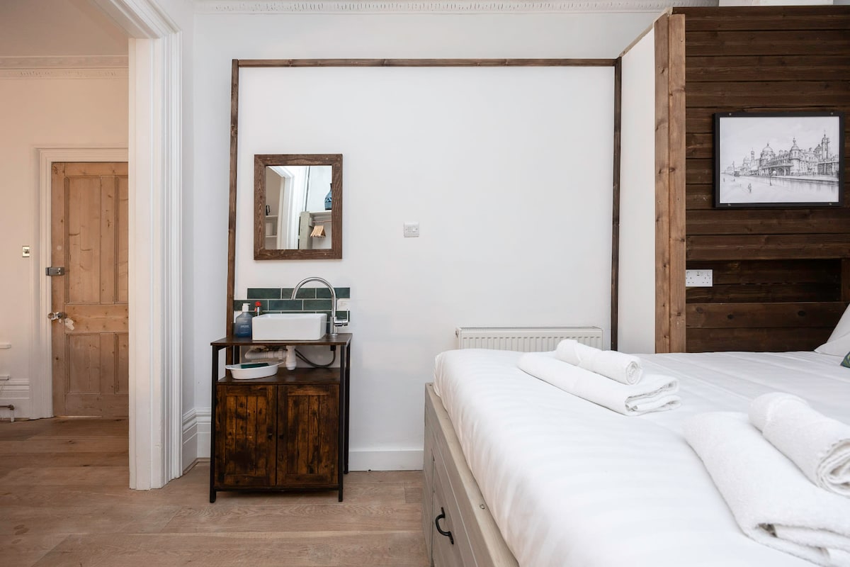 This luxurious studio apartment, just a two-minute stroll from the beach, is a spacious retreat designed for two. It features a beautifully handcrafted interior with bespoke details, a supremely comfortable super king-size bed with integrated storage, and a cozy living area complete with a comfortable sofa, dining area, and Smart TV. With Hive digital heating control and a modern bathroom offering a powerful pressurized shower, every detail is designed to elevate your stay.Located close to Brighton’s vibrant city center, the apartment is a short 20-minute walk from top attractions, restaurants, and unique shops, offering easy access to everything the city has to offer.