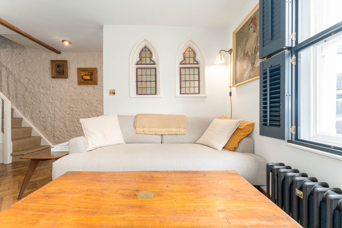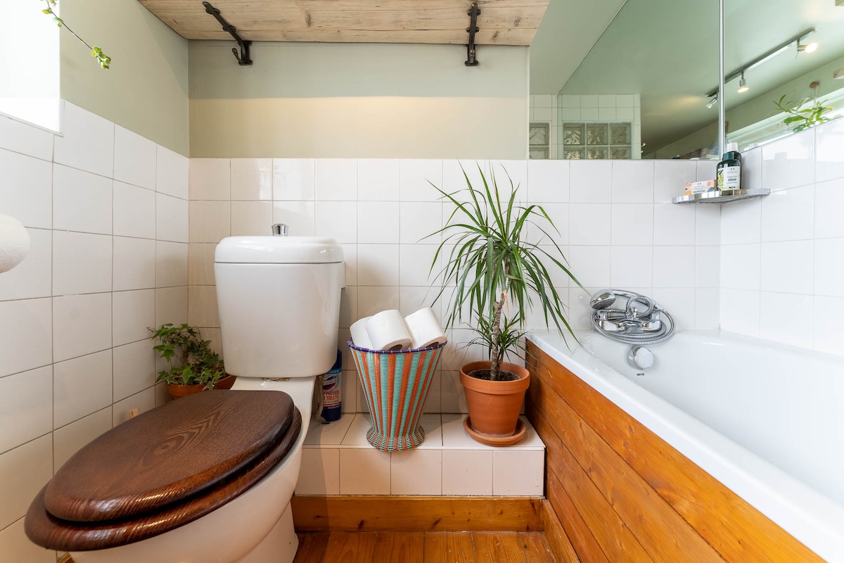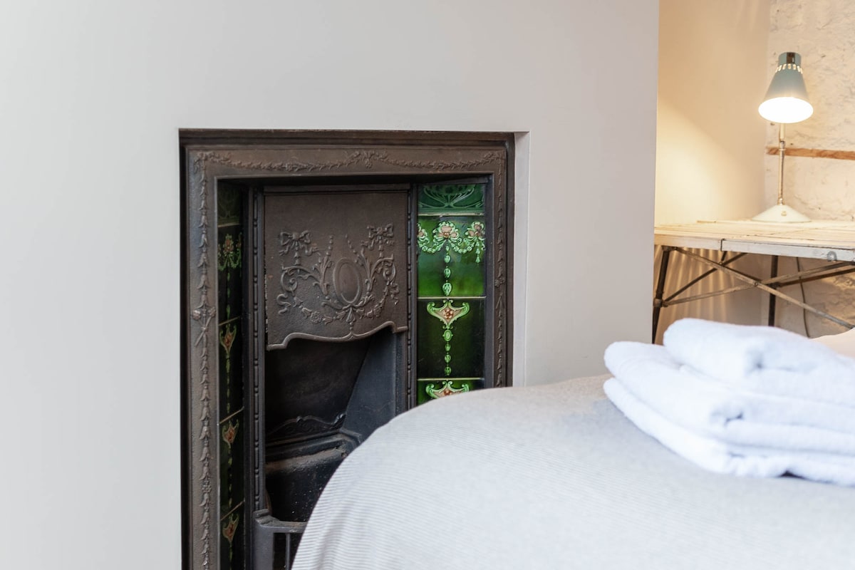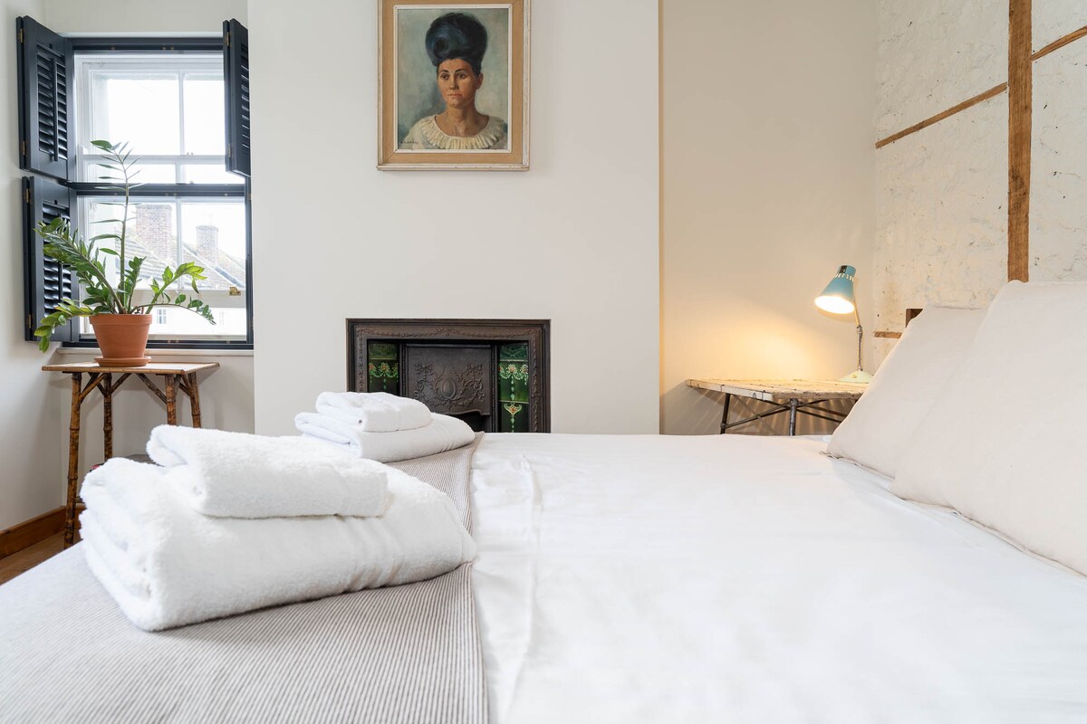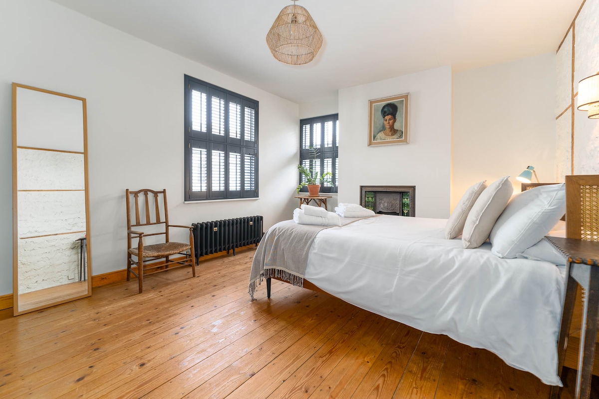 There are two bedrooms - one with a double bed and the other with a king-size bed, both finished to a high standard in neutral tones, great wall art and some unusual furniture items. Bedroom 1 has a character exposed brick wall. The large sash windows in both bedrooms let in plenty of natural light during the day whilst the shutters ensure a great night's sleep. Both bedrooms have storage for your clothes and personal items. We provide plenty of fresh white linen and towels for all guests.