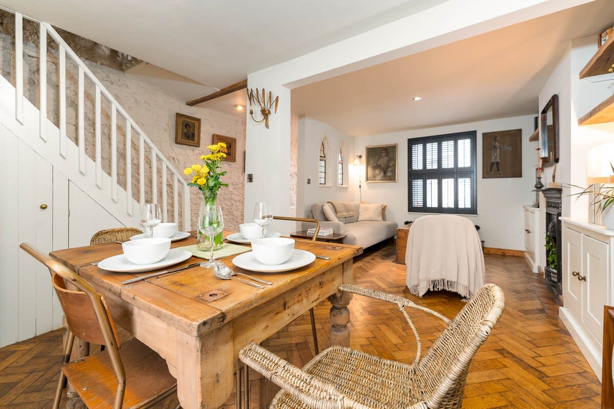 The dining room features a table that seats up to four guests and also serves perfectly as a workspace, with excellent Wi-Fi provided.