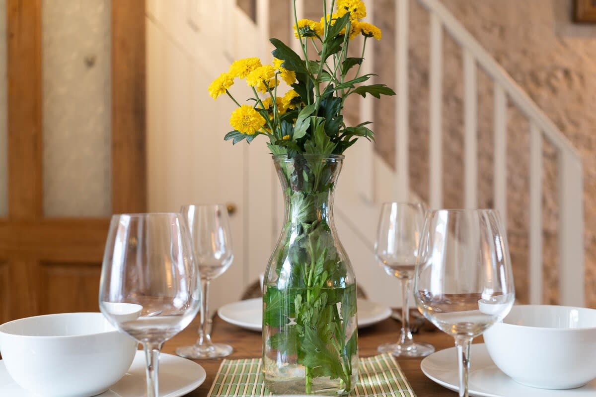 The fully equipped kitchen has everything you’ll need during your stay - there’s a Dualit toaster and Bosch kettle so you are all set for breakfast! There's also an oven, large gas hob, fridge with freezer, washing machine, and plenty of cookware, glassware and crockery. There's also plenty of space for preparing your brunch or dinners for friends and family. In addition to this we offer complimentary tea and coffee, salt and pepper and cooking oil - so please help yourself.