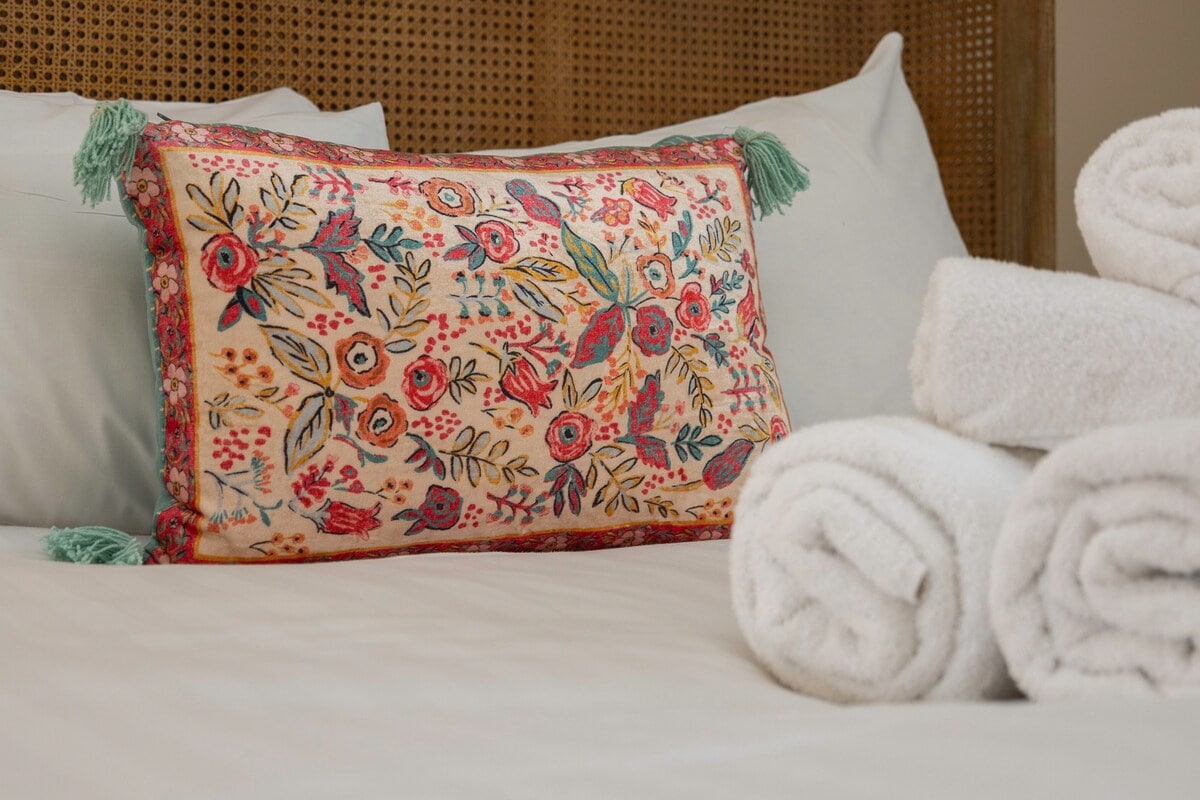 All of the beds are made with fresh, white linen, and we provide large bath and small hand towels, as well as complimentary guest toiletries.