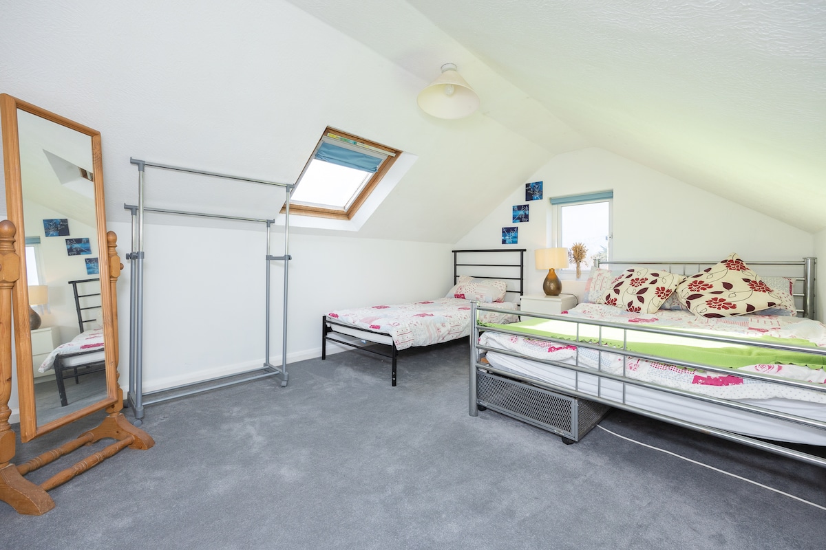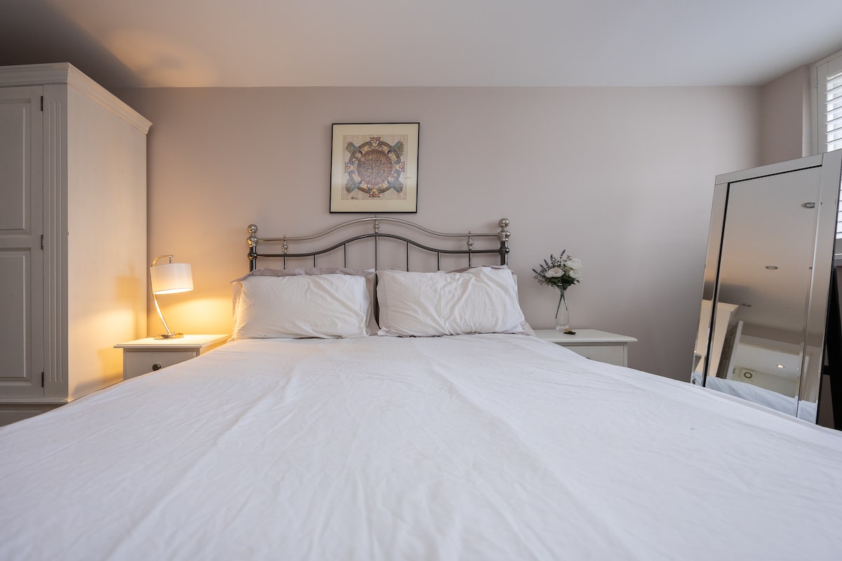 The fully equipped kitchen includes everything needed for cooking, with complimentary tea, coffee, sugar, and cooking essentials, as well as glassware, cookware, and cutlery to make you feel at home. The contemporary family bathroom and ensuite both offer walk-in showers, and we provide complimentary guest toiletries, as well as an iron, ironing board, and hairdryer for added convenience.