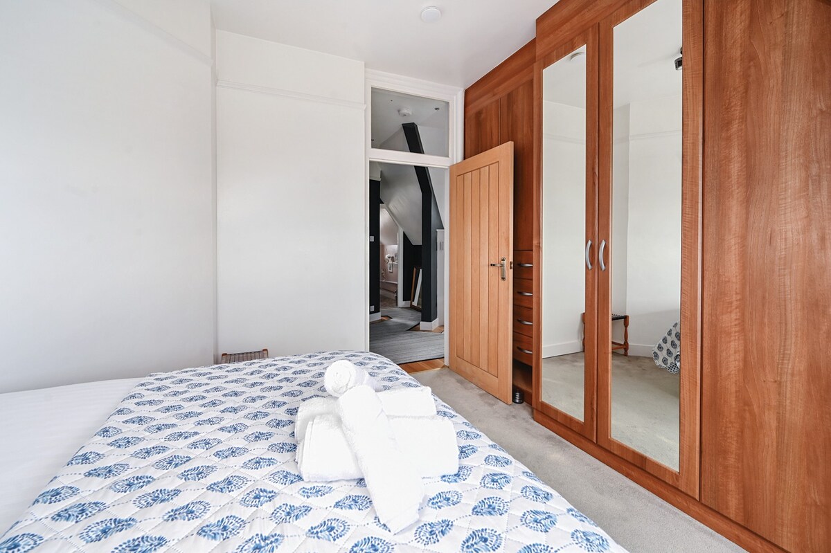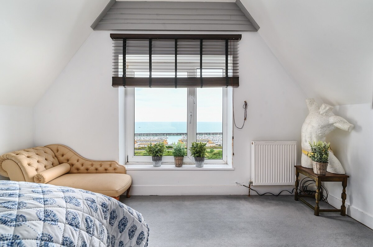 This cosy yet comfortable bedroom includes a king-sized bed set right by the window for beautiful sea views. It also features a built-in wardrobe to store clothes and luggage.