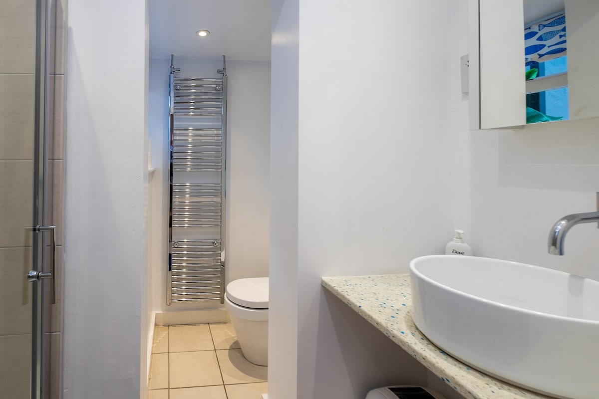 Perfect for 4 guests, it's located on a pretty residential street in a conservation area, that is just 10 minutes from the beach. In fact, you can see the sea when you look straight down the street! It's also just a few minutes from cafes, shops and restaurants. Everything is within walking distance.