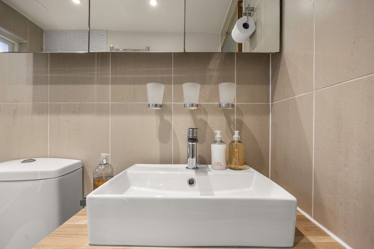 In the evenings, unwind in the cosy living area, with comfortable furnishings and a decorative fireplace. The perfect place to relax after a busy day enjoying all that Brighton has to offer and enjoy your favourite TV show in this stylish.