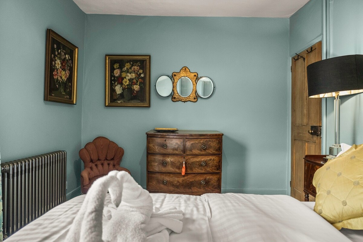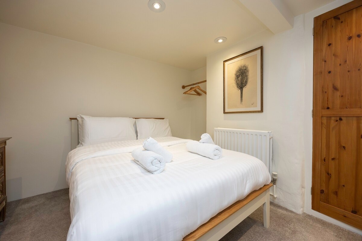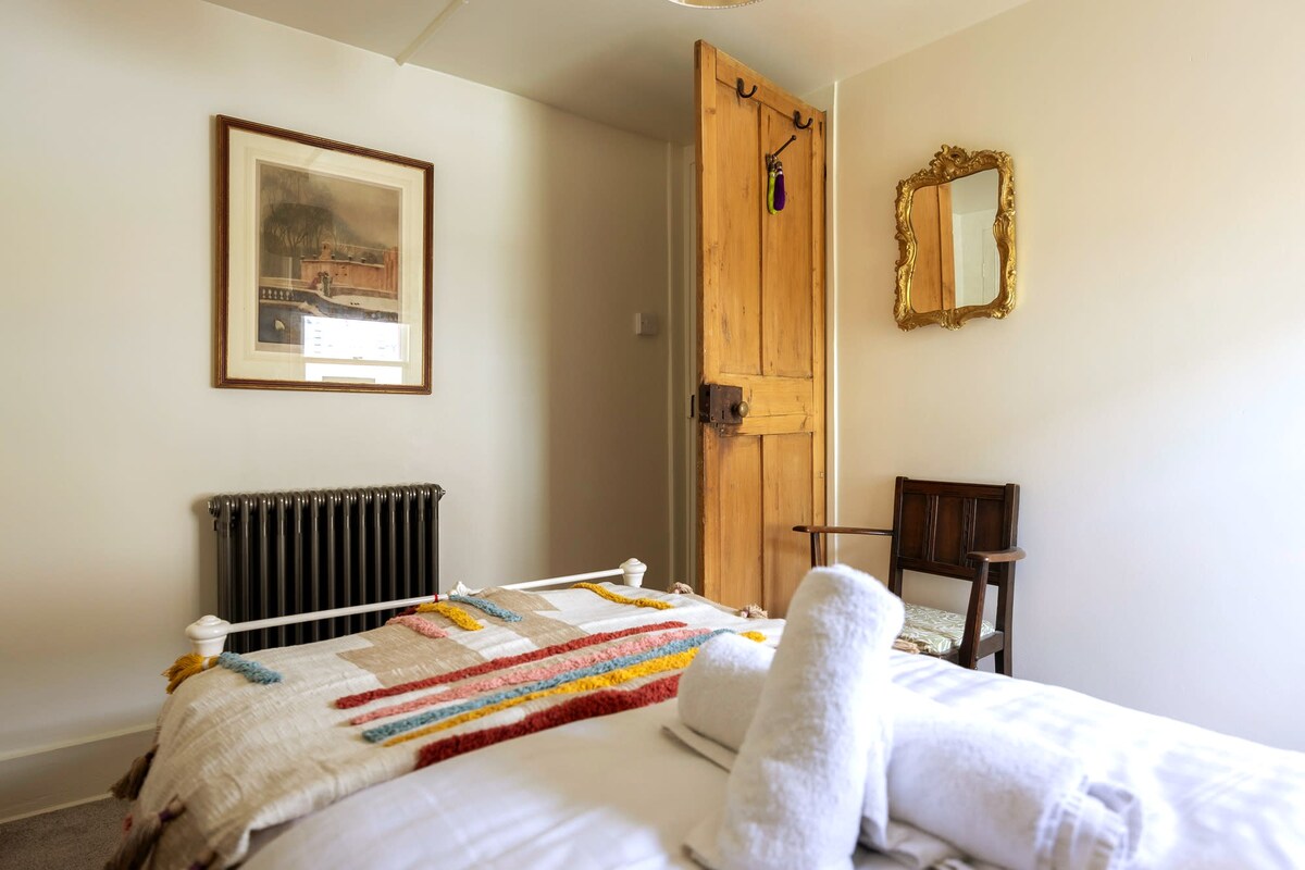 This single bedroom faces the rear of the property overlooking the courtyard garden and has a comfortable iron frame bed.