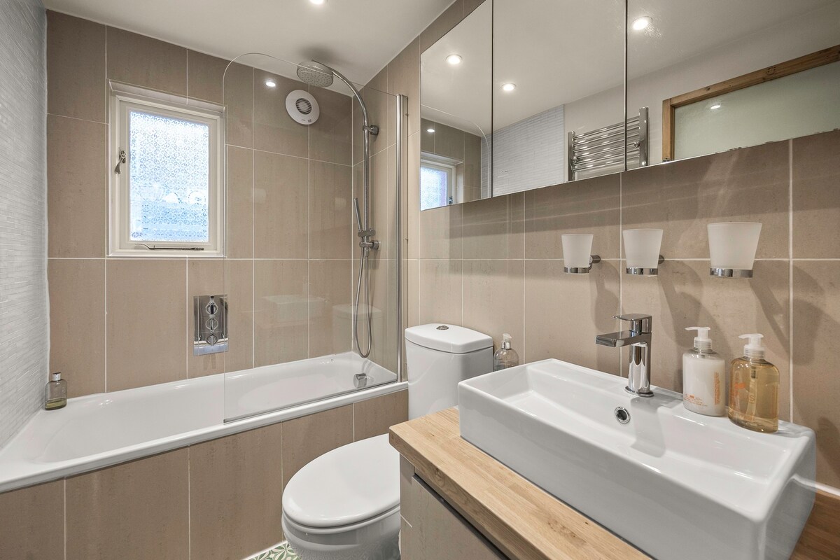 Just off the landing, you'll find the fully tiled family bathroom, featuring a contemporary suite with a shower over the continental bath. Complimentary guest toiletries are provided for all guests.