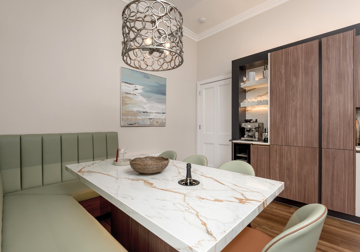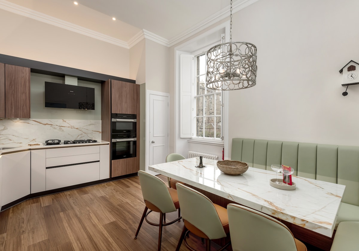 The Kitchen is spacious with a good Dining Room table that sits 6. The Living Room displays big beautiful windows that capture every ounce of light shining on Edinburgh. The grand bedrooms, elegant design and spacious layout makes guests feel like divine royalty.