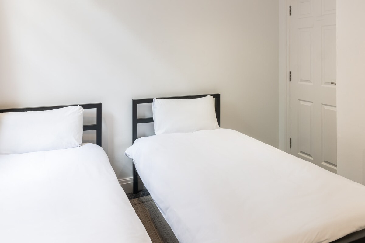 This modern 5 bedroom apartment is located in Ropewalks moments from buzzing Liverpool Central with the city's buzzing nightlife on your doorstep! With 5 bedrooms, 2 bathrooms and an open plan kitchen living area, this flat is perfect for up to 12 guests looking for a trendy city escape to enjoy Liverpool's nightlife.The flat is located on the second floor of a private apartment building and has stunning contemporary wooden flooring and neutral decor throughout. The apartment is spacious with 5 bedrooms, each fitted with two single beds, a combined kitchen and living area with a sofa bed, and 2 bathrooms.