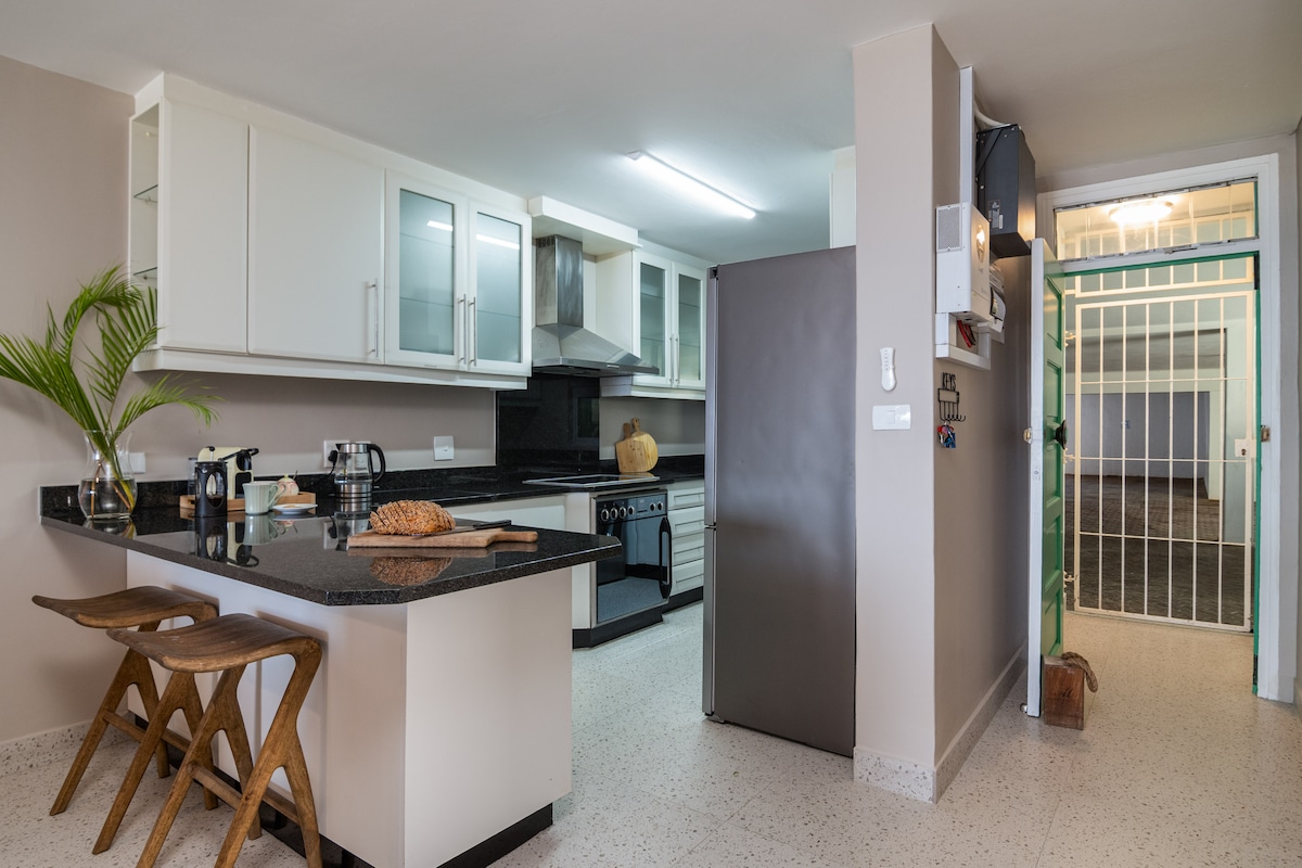The apartment has security gates on all doors and windows for added peace of mind.