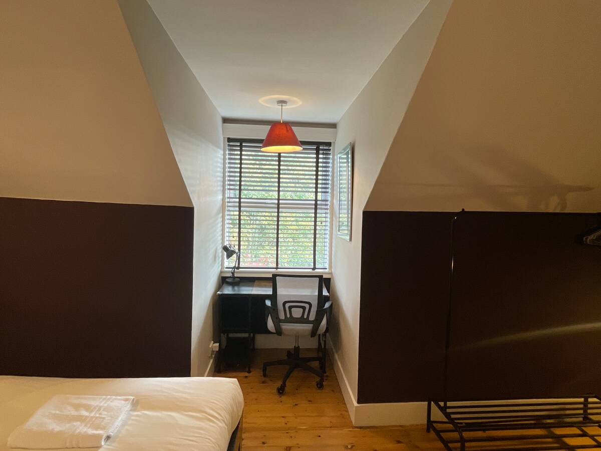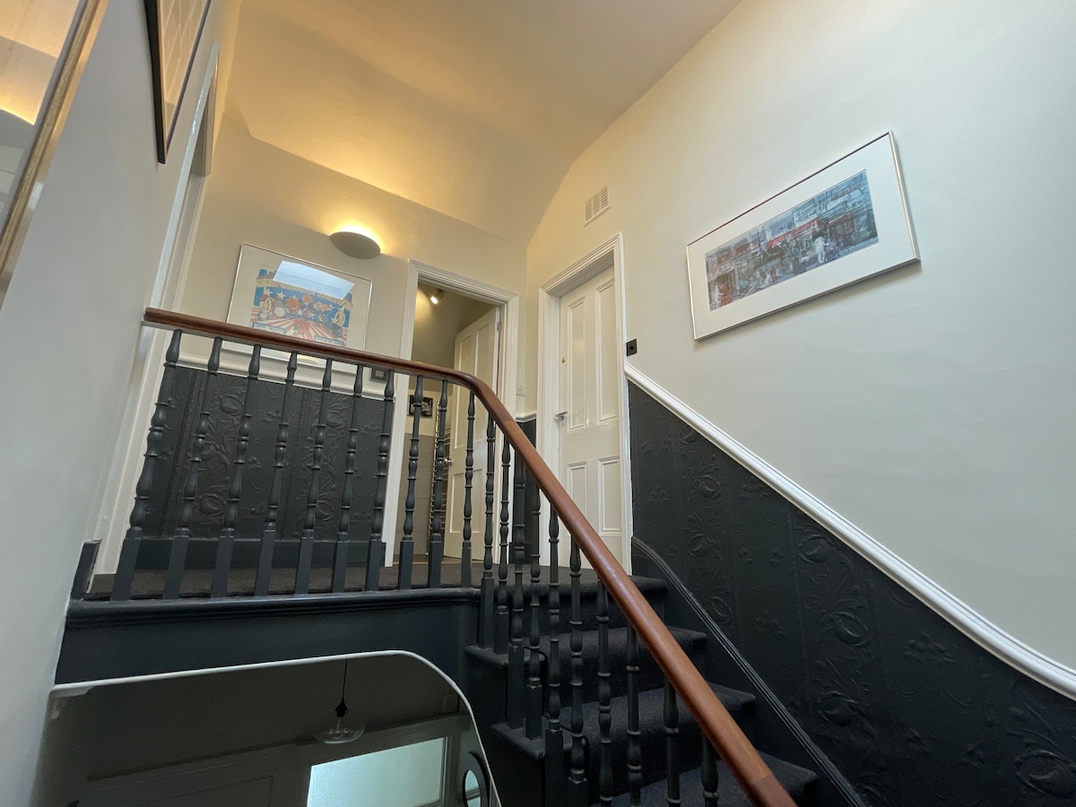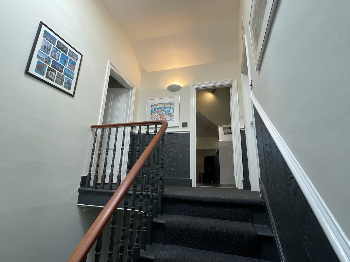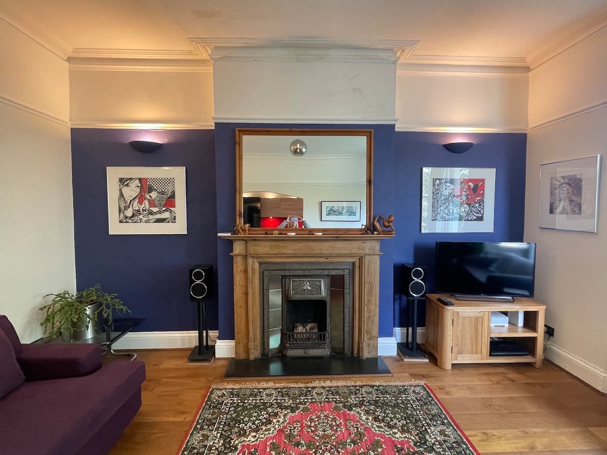 Absolutely beautiful 2 floor apartment on the 2nd floor of a 1900's (?) large town house. Very well furnished, lovely decor, loads of space - it has the wow factor, for sure. Off street parking behind the house is a huge plus. Town centre is a leisurely 20 min stroll, but you pass plenty of shops and fab cafés on the way OR catch one of the many busses. Taxi is about £7 to get back on a night. Lovely floral park across the road to catch the sun. Great value when compared to hotel prices with small rooms and zero privacy! Can't wait to go back. Book with confidence, you'll love it!