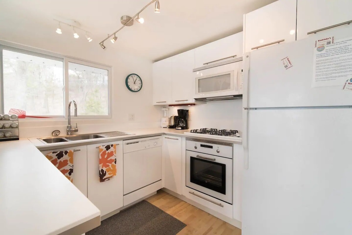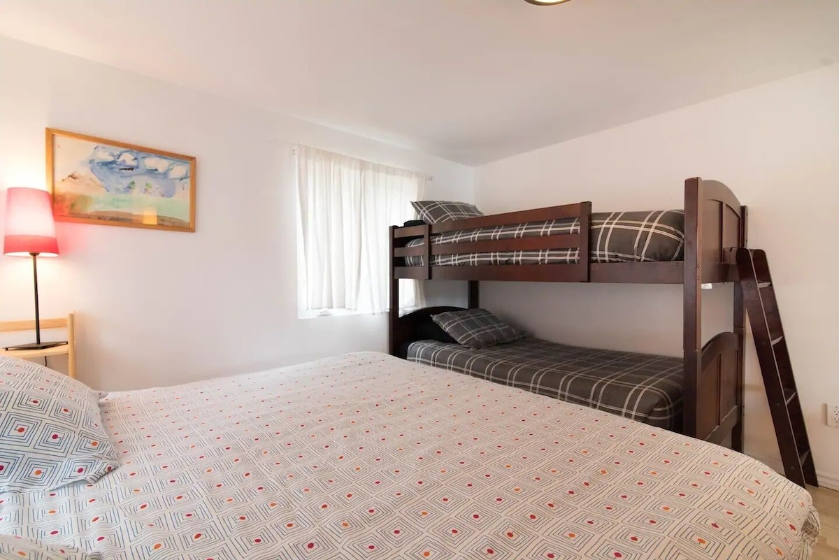If you want 4 bedrooms 2 baths, you can rent the first floor as well. Both units are completely separate but are great for one large group. The upstairs unit has a larger living room and bedrooms and a smaller kitchen. The downstairs unit has a smaller living room, larger kitchen and larger dining table. We have a gas bbq, outdoor chairs and tables, docks, decks, washer/dryer, dishwashers and ice cream machines in all units
