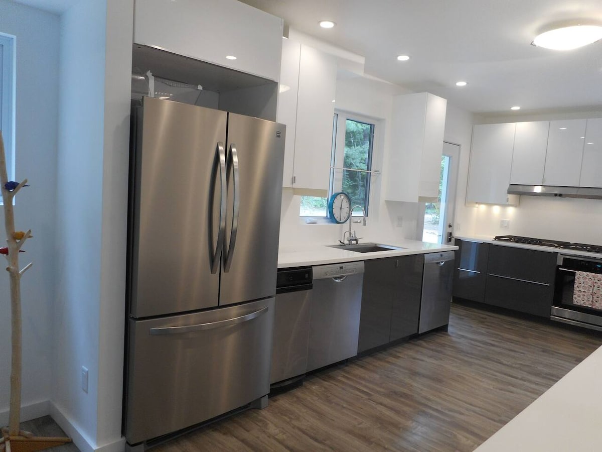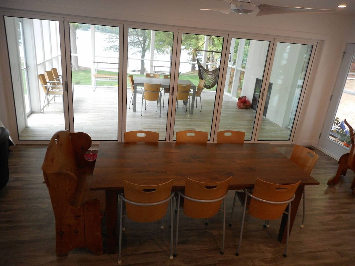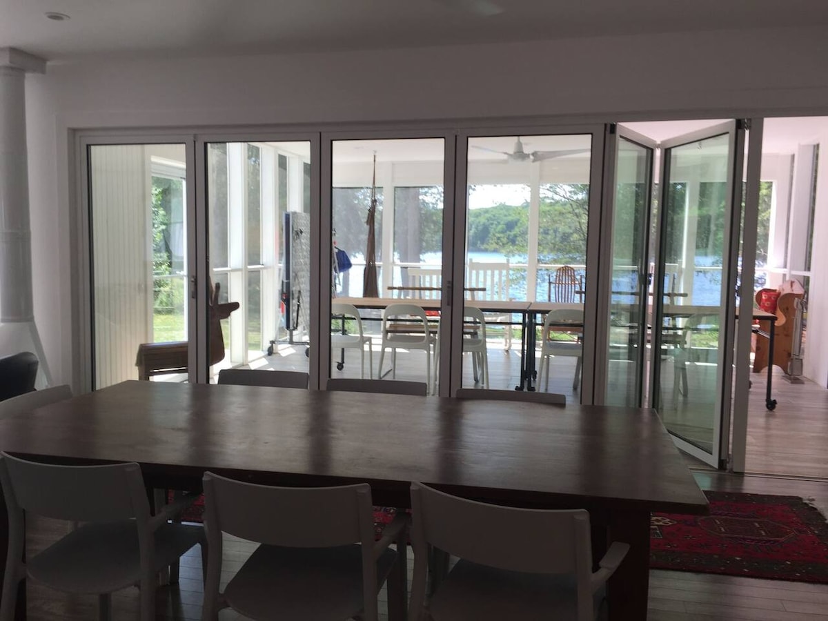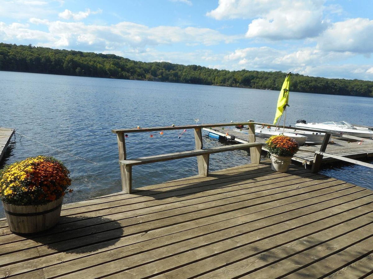 Sleep 14 in our amazing waterfront cottage. Swim in the purest water- no weeds-- use our kayaks, SUP's, peddleboards, canoes to explore Bobs Lake. Rent our motor boats for tubing and water skiing. . Cook together in our chef's kitchen with 8 burners, 2 refrigerators, 2 dishwashers, 2 wall ovens. Enjoy your privacy with 5 bathrooms.