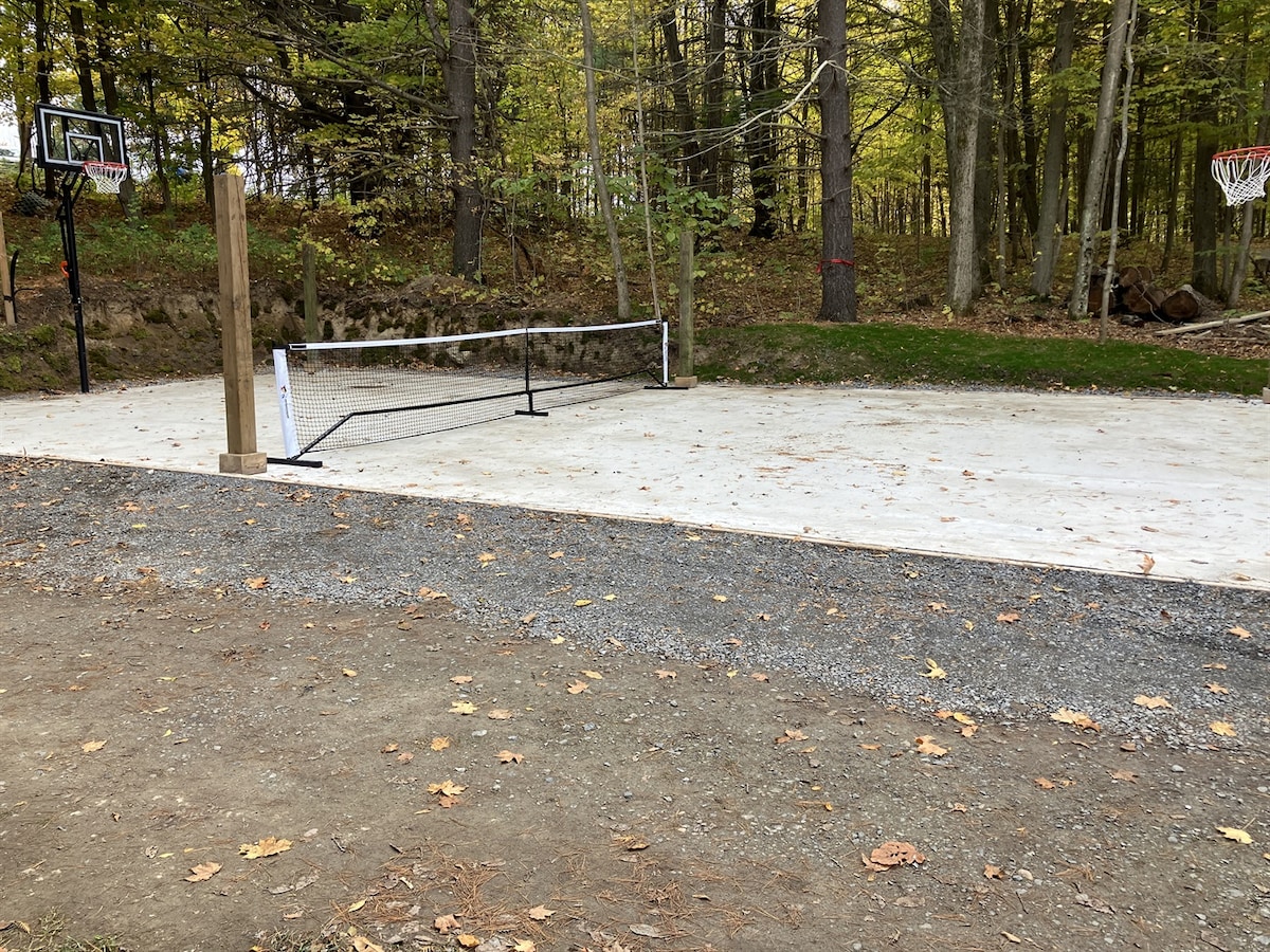 Dock in front of house, large deck at water, playground, fish cleaning hut, private hot tub, large outdoor seating area, tiki bar, pickleball, basketball, volleyball, pool table, fire pit, sandy beachOther things to note