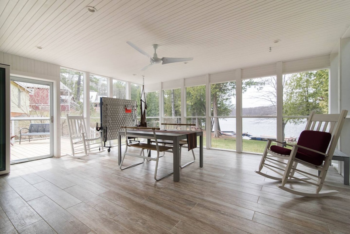 Everyone were complimenting and praising this cottage. From all the nearby amenities and easy access to the lake with paddles, kayak/canoes, volleyball nets, and fun trials to walk through. I can go on forever with regards to how amazing this spot is. I particularly like the fireplace and the amazing views of nature given it's facing the lake. We even like how there's island of which we canoe too and explored and plenty of activities to keep anyone busy. We didn't have enough time to do it all and might need to book a week to truly enjoy what this cottage has to offer. Marla is a gracious and kind host that quickly responded to our needs from opening the sunroom so we can conduct our Salsa Lessons. In addition, to providing us towels (which was mentioned that it wasn't provided well in advance) - so long as we had them washed. We were able to watch horrors movies, eat good food, and had very peaceful sleep and rest. Thank you once more and we look forward to coming back. Cheers