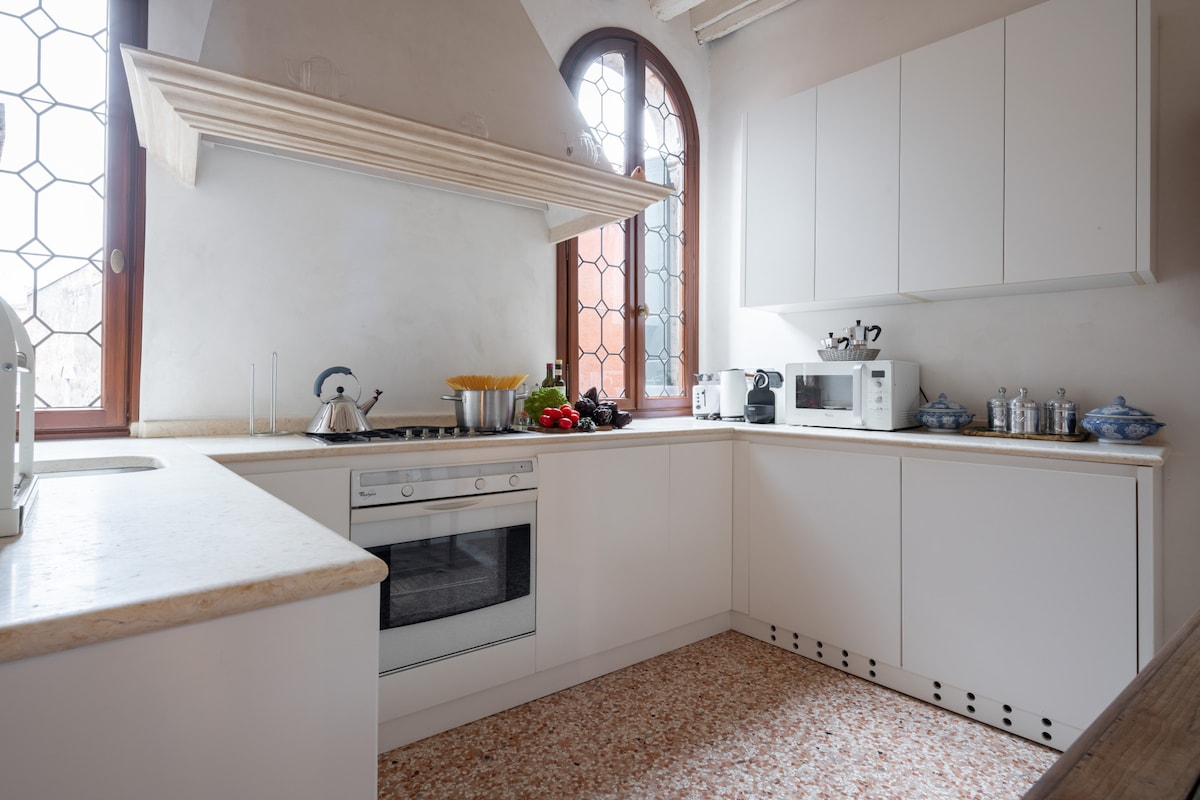 The apartment was stunning, decorated in Venetian style. The bathroom has a modern renovation, and the kitchen is well equipped. The area is very quiet, just a 2-minute walk from a square with restaurants, a bridge, and gondolas. The only thing we didn’t really like was that we arrived at 3:00 PM, reached Venice at 4:15 PM, informed that we were there, and were told the apartment would only be ready at 6:00 PM. Since we were with three children, this was a bit uncomfortable. Nevertheless, the trip to Venice was unforgettable, and I can recommend this location.