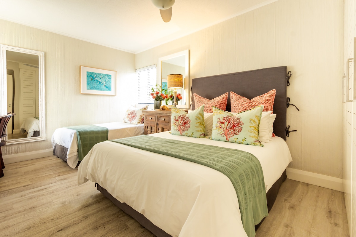 Bedroom 3 has two singles that can be converted into a queen size for couples (please request in advace).