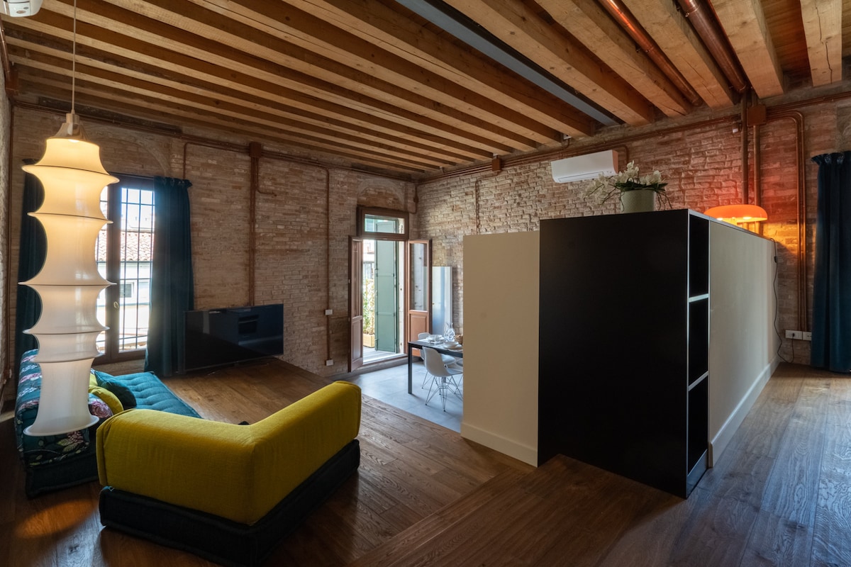 A beautiful apartment and a design loft with sumptuous finishes and furnishings both contemporary and antique, in perfect harmony with the original architecture of an ancient Venetian house full of charm and history.