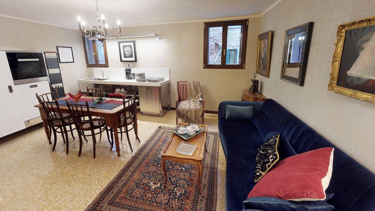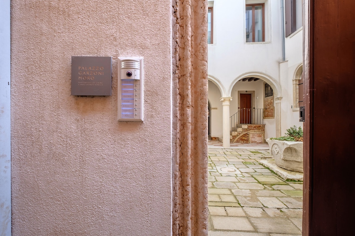 The first settlements in the area date back to the 10th century and the first palaces were built in the 12th century.Palazzo Garzoni Moro has been built in the 15th century and it has been restored completely in 2017. It is composed by a large residence facing the Canal Grande and privately owned and 8 apartments in the rear part of the Building all facing the private courtyard, the nearby canal and the Venetian roofs. Despite being close to most attractions and tourist’s routes for the Guggenheim Foundation, Accademia di Belle Arti, Museo Franchetti, Palazzo Giustiniani and Palazzo Fortuny it is extremely quiet. The proximity to Salizada San Samuele, Calle della Mandola and Campo San Maurizio give the chance to the guest to be also close to so many shops, restaurants and the famous antique open market of San Maurizio. Literally 5 minutes’ walk to “Palazzina G” famous luxury Hotel and close to the “Bauer”, key spots for the exclusive night life in Venice, allow the guest to feel and be in the centre of anything that matters and happen in town, especially, during the Film Festival and the Biennale of Arts and Architecture.