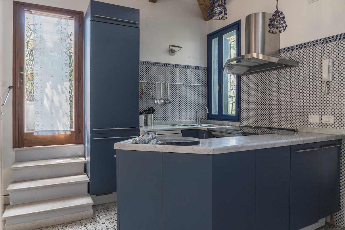 The largest terrace is surrounded by plants and flowers and the smallest one is along the nearby canal. On top of the house there is an altana terrace that will put you above of most houses in Venice and give you a fantastic view. Sunny and quiet you can enjoy a fully equipped kitchen and just at 100 meters from the apartment you can choose from the best Venetian restaurants also vegetarians