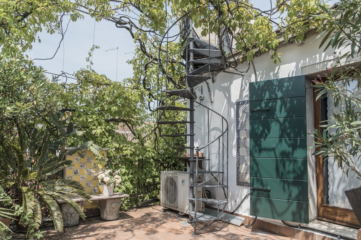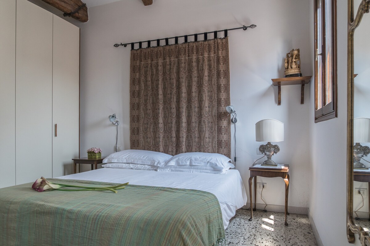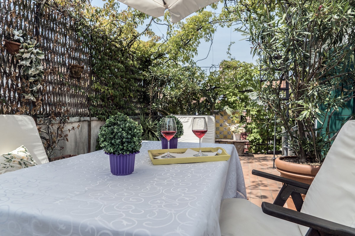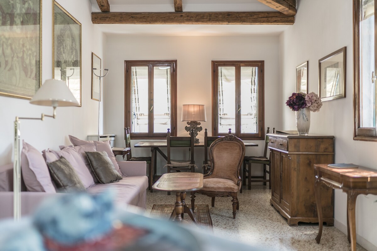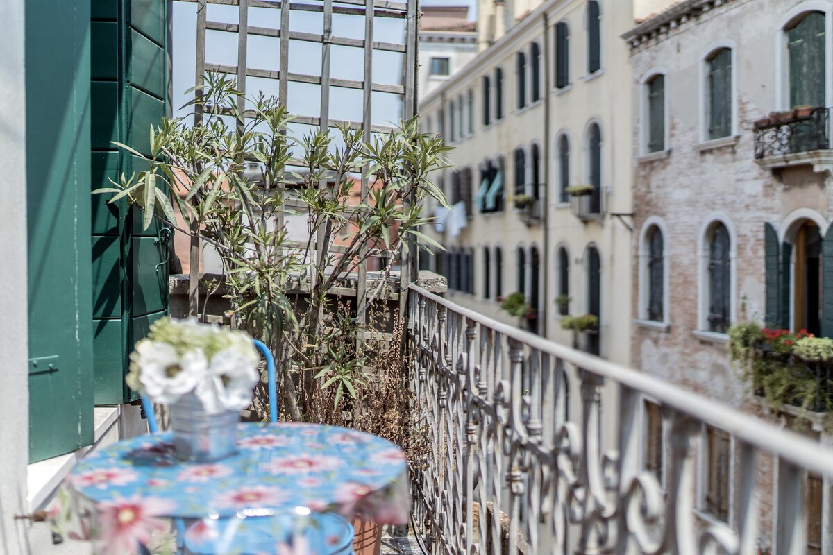 Unique apartment in Venice with 3 terraces facing the roofs of Venice and canalsVery bright one bedroom apartment with: canal View, air conditioning, Wi-Fi and three lovely terraces. This apartment is situated off Campo San Giacomo dall’Orio, in the Santa Croce district and it is at about 10 minutes’ walking from the railway station and Piazzale Roma (car parks and bus stations). A large double bedroom and a double sofa bed allow a romantic escape or a small family holiday. Near the groceries and excellent restaurant you will be able to enjoy the Campos’ life and retire in a very quiet spot.