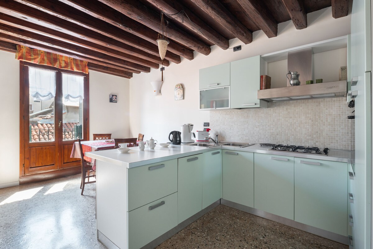 The living area is very large and bright and the view in all directions of the house is of the palace’s roofs. The kitchen is fully equipped with all modern utensils and electric devices. Wi-Fi and ADSL connection is available and included in the price; the TV is HD and has satellite connection (SKY). The house has been a family home for many years and it is in a nice and well-kept building. The lift is a rarity in Venice and being on the 4th floor, it is a good feature for a guest that has been around all day or for bringing the luggage in the flat.Guest access