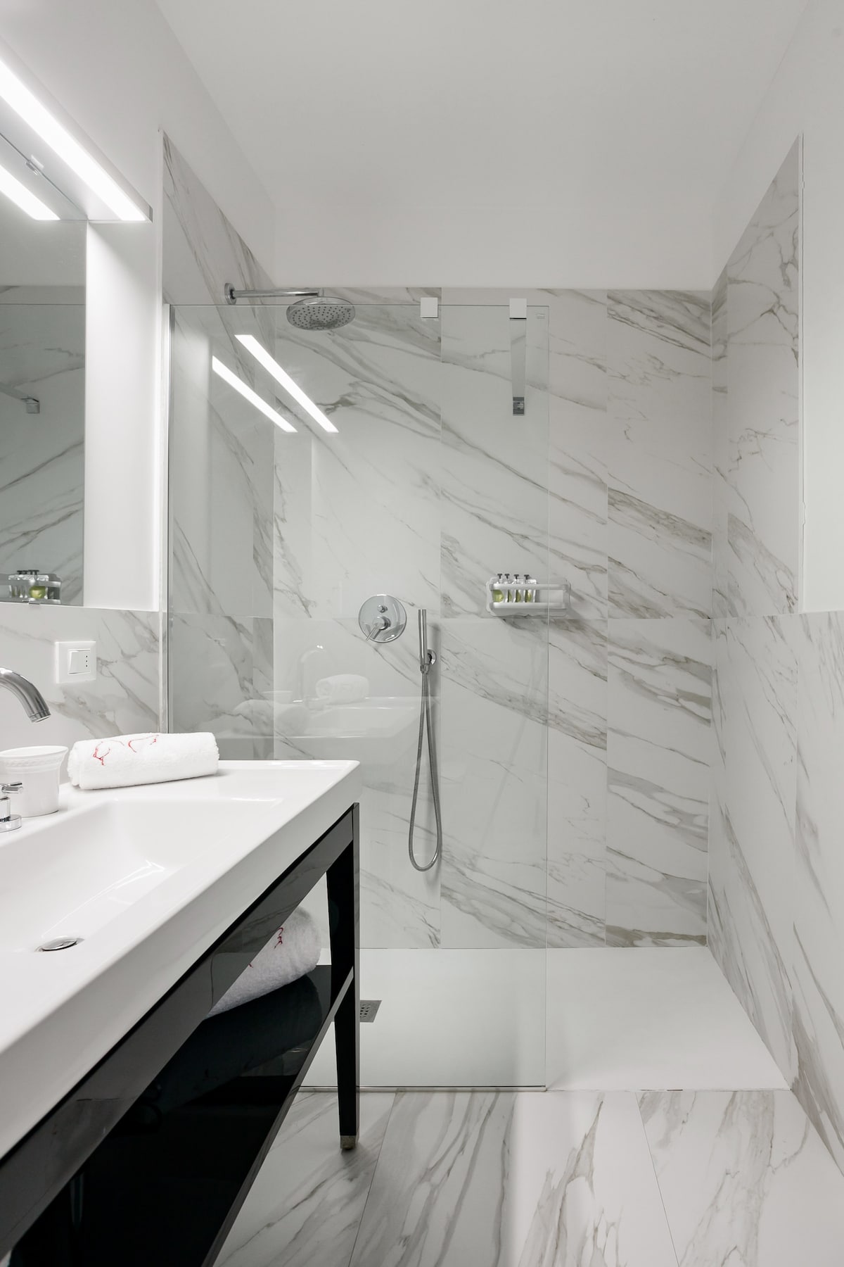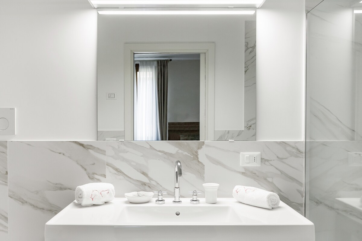 Palazzina Canal is a large apartment with 5 bedrooms that can comfortably host up to 10 persons. The apartment has 3 bathrooms and a large family kitchen. The living area has a large table for 10 seating and the living area has sofa’s armchairs and a large 40” smart flat TV. Internet and air conditioning is centralized and completely new like the all furnishing and house’s equipment.The bedrooms are along all the living area. The large master bedroom has an en suite bathroom with shower cabin and the other 2 double bedrooms can be transformed in twin bedrooms. There are other 2 bedrooms that are single but can add a bed each to make them twin. The second and third bathrooms have respectively stylish bath and a cabin shower and, as the rest of the apartment, have been completely fitted new in August 2014.