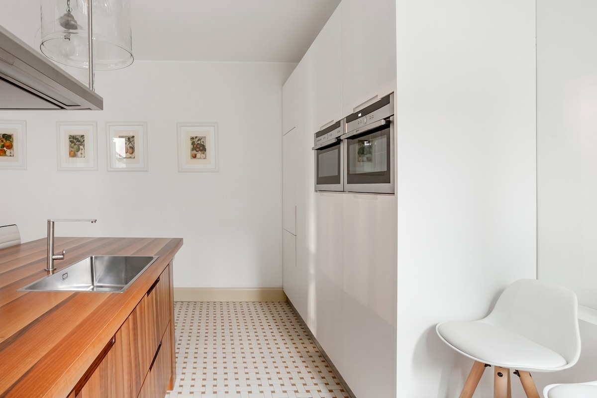 The bedrooms are along all the living area. The large master bedroom has an en suite bathroom with shower cabin and the other 2 double bedrooms can be transformed in twin bedrooms. There are other 2 bedrooms that are single but can add a bed each to make them twin. The second and third bathrooms have respectively stylish bath and a cabin shower and, as the rest of the apartment, have been completely fitted new in August 2014.
