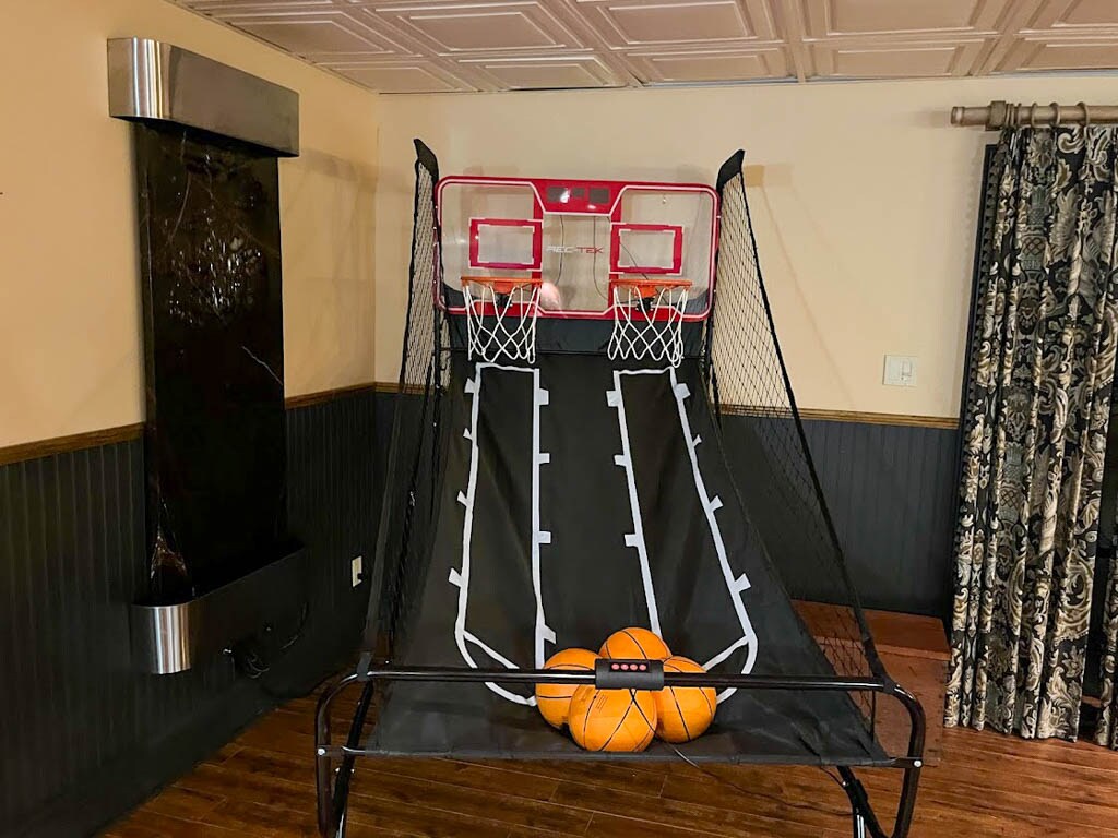 Downstairs there's another large screen TV with electric fireplace - great place to watch the game or watch a movie. Or maybe shoot a game of pool while enjoying your favorite bevy.