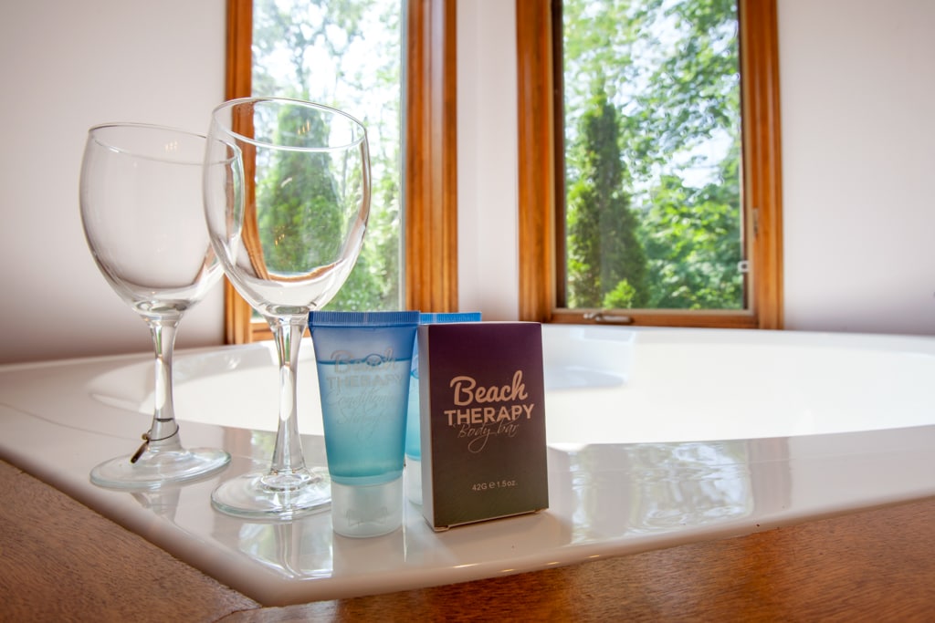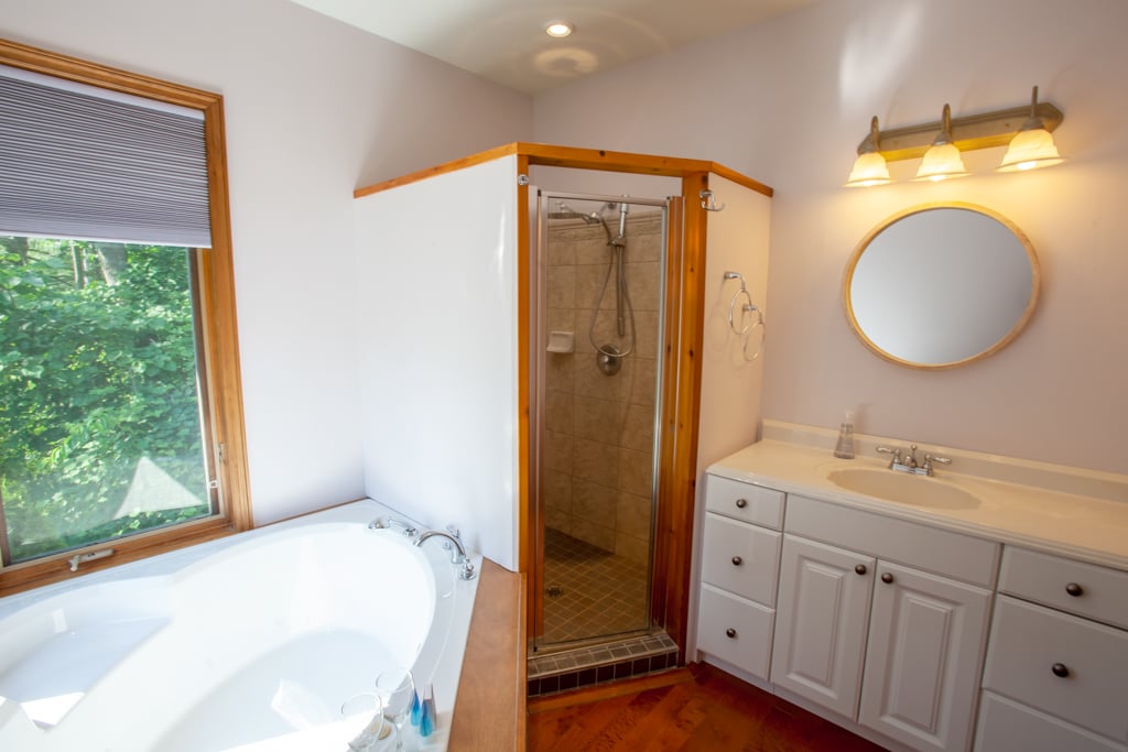 Premier bedroom with King bed. And you will appreciate the ensuite with tub and separate shower. Grab a glass of wine and your favorite book to soak in the cocoon jacuzzi tub.