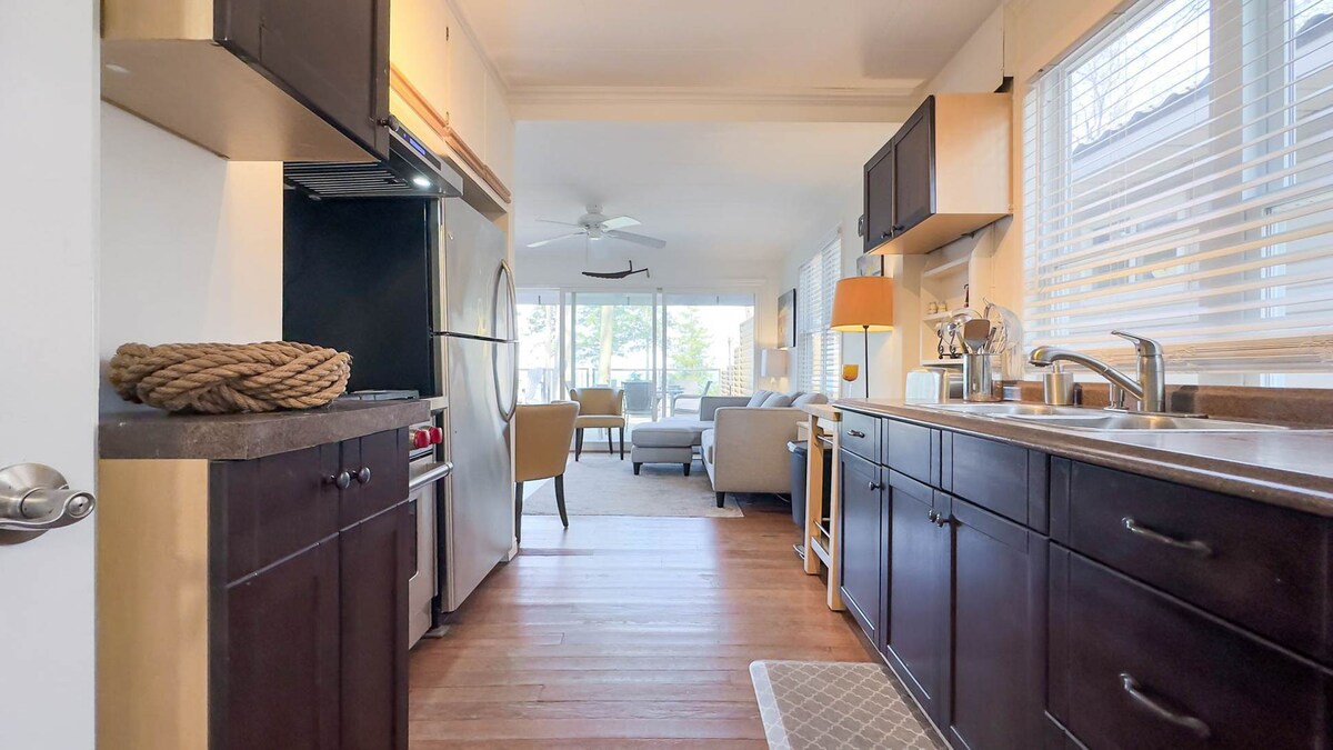 INSIDE:With enough room to sleep four, our cottage is just right for creating those unforgettable memories with your loved ones. Floor to ceiling windows capture Lake Huron's Splendor. And hey, who needs a fancy restaurant when you've got a full kitchen at your fingertips? Whip up some tasty treats with all the comforts of home.
