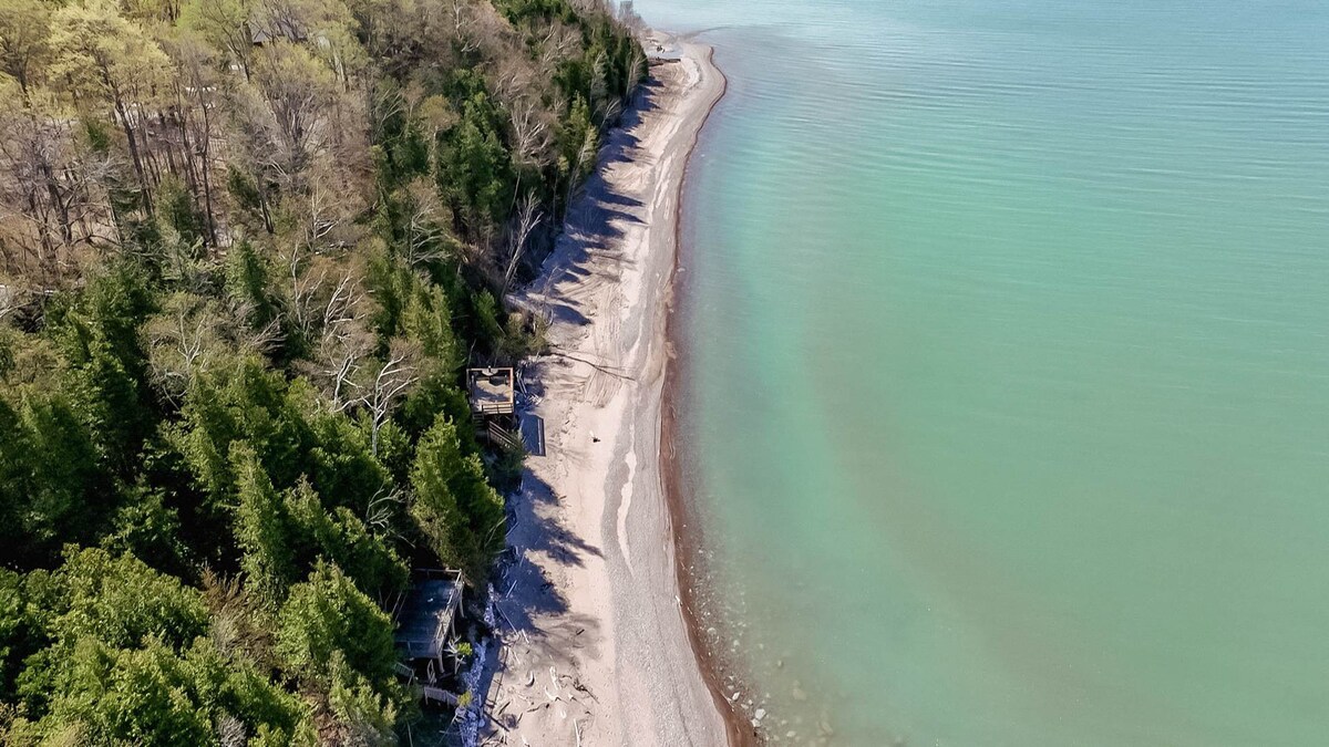 NOTE: Approx. 60 stairs down your private access. The lakebed can be sandy or stoney depending on what the lake gives you that day. But it sure is fun to try to find the ever changing sandbars. Generally you will find sand 3ft out. It's fun to go stone collecting - Lake Huron is a geologists paradise! Just bring some water shoes. The nice thing is, it's not weedy or slimy at all.