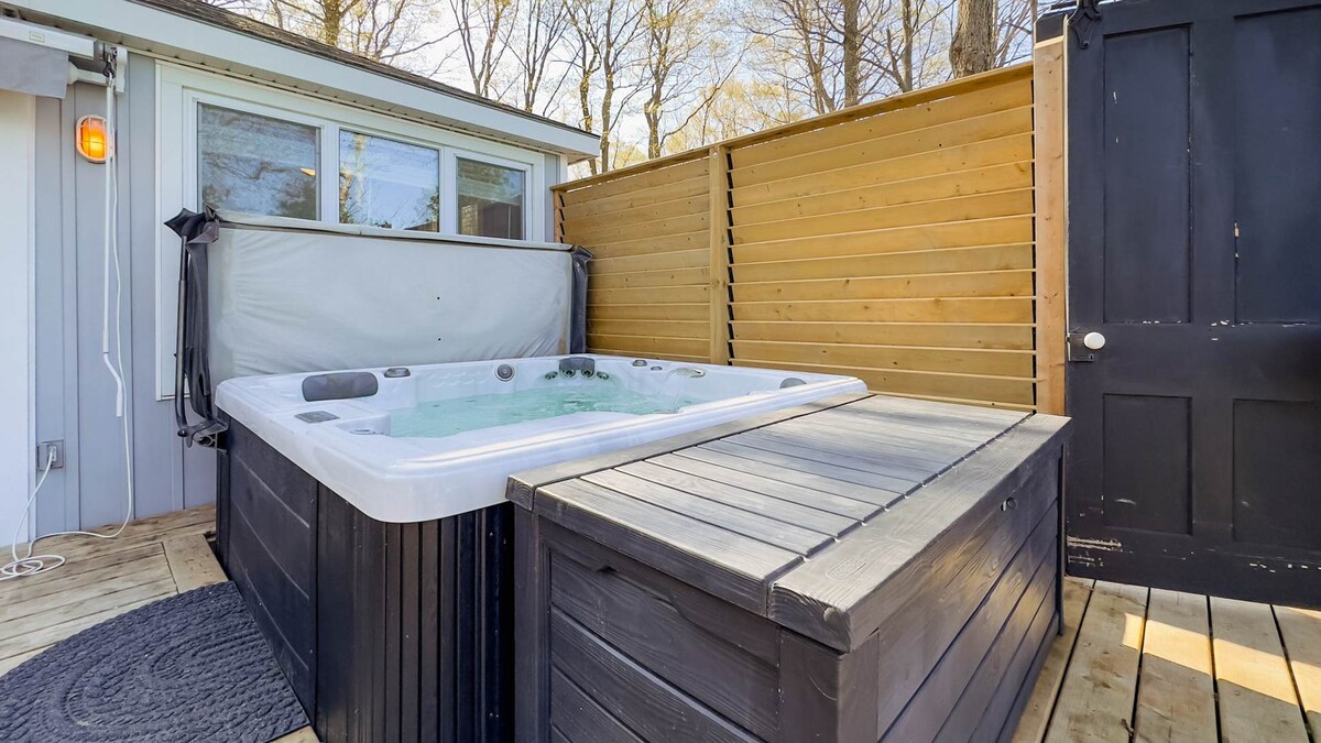 But let's not forget the pièce de résistance—the hot tub! Oh yeah, we're talking ultimate relaxation here. Unwind with a bubbly soak under the stars and let your worries melt away. It's pure bliss!