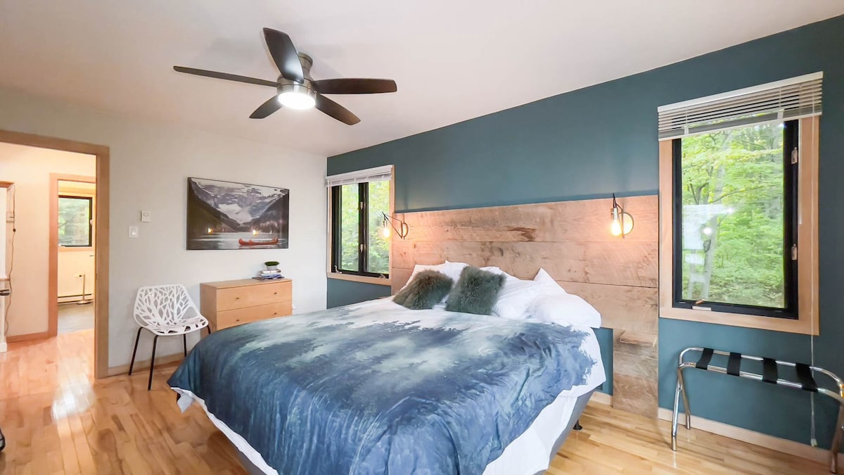 Master bedroom offers a NEW Douglas King sized bed which opens to the deck offering lake views