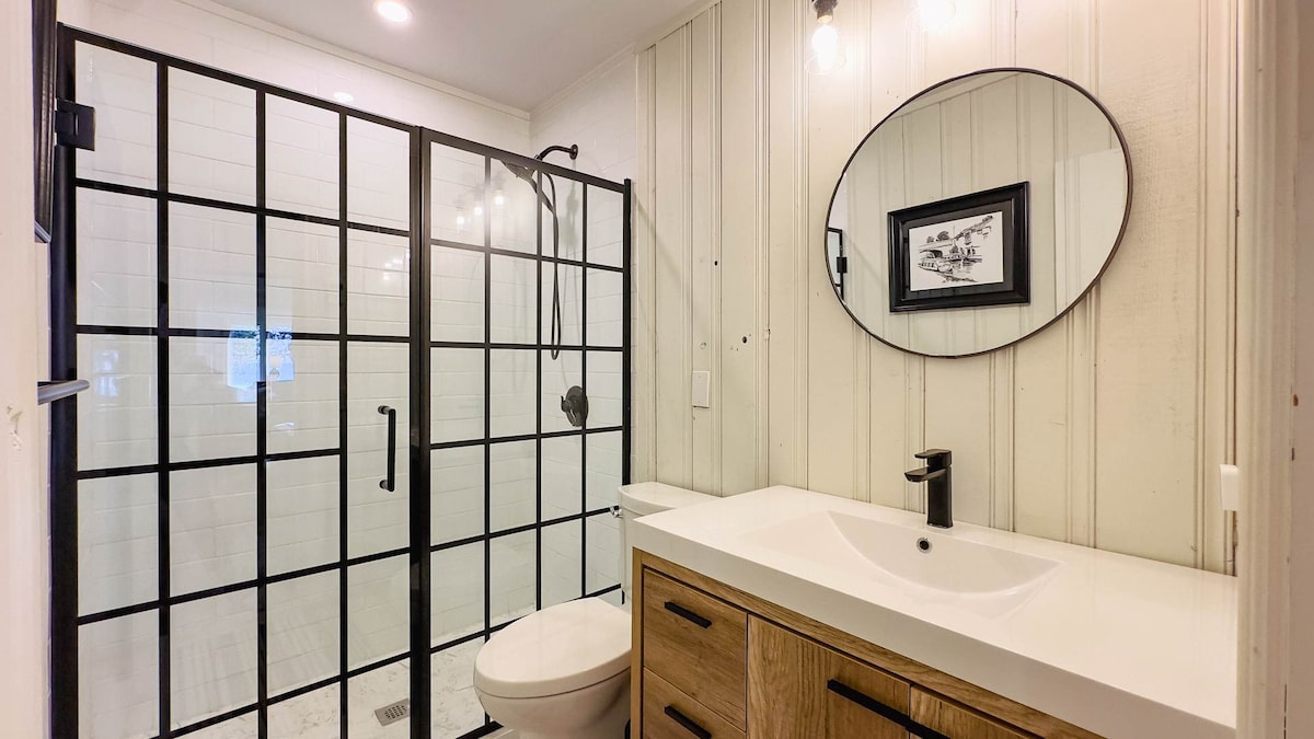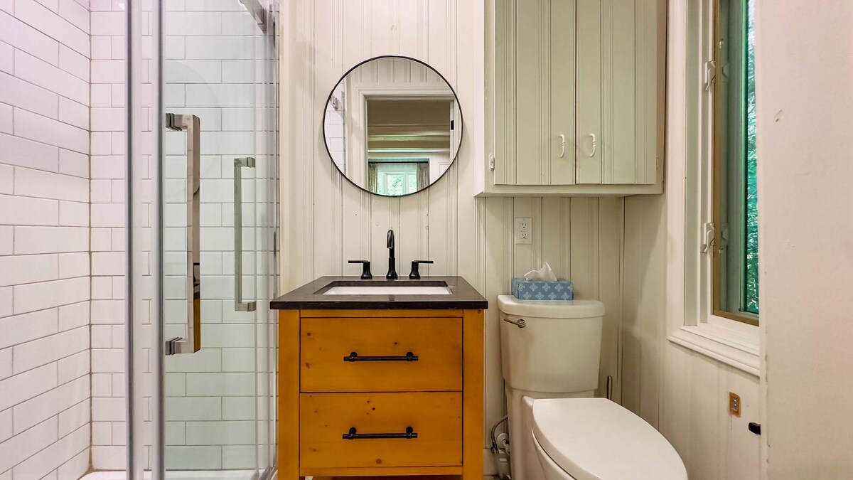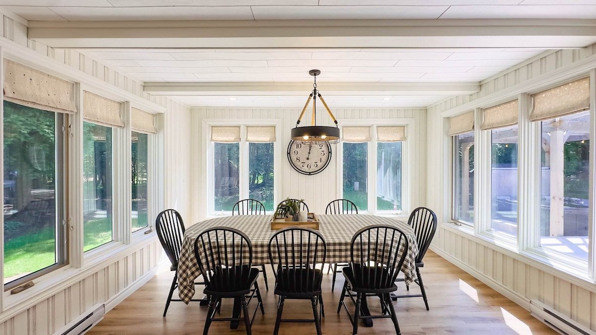 Show off your grilling skills on the propane BBQ and savor meals outdoors. Challenge your crew to yard games on the sprawling grassy area, or sneak away for a peaceful nap in the hammock under the shade of the trees.