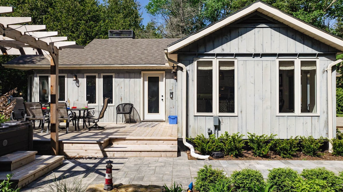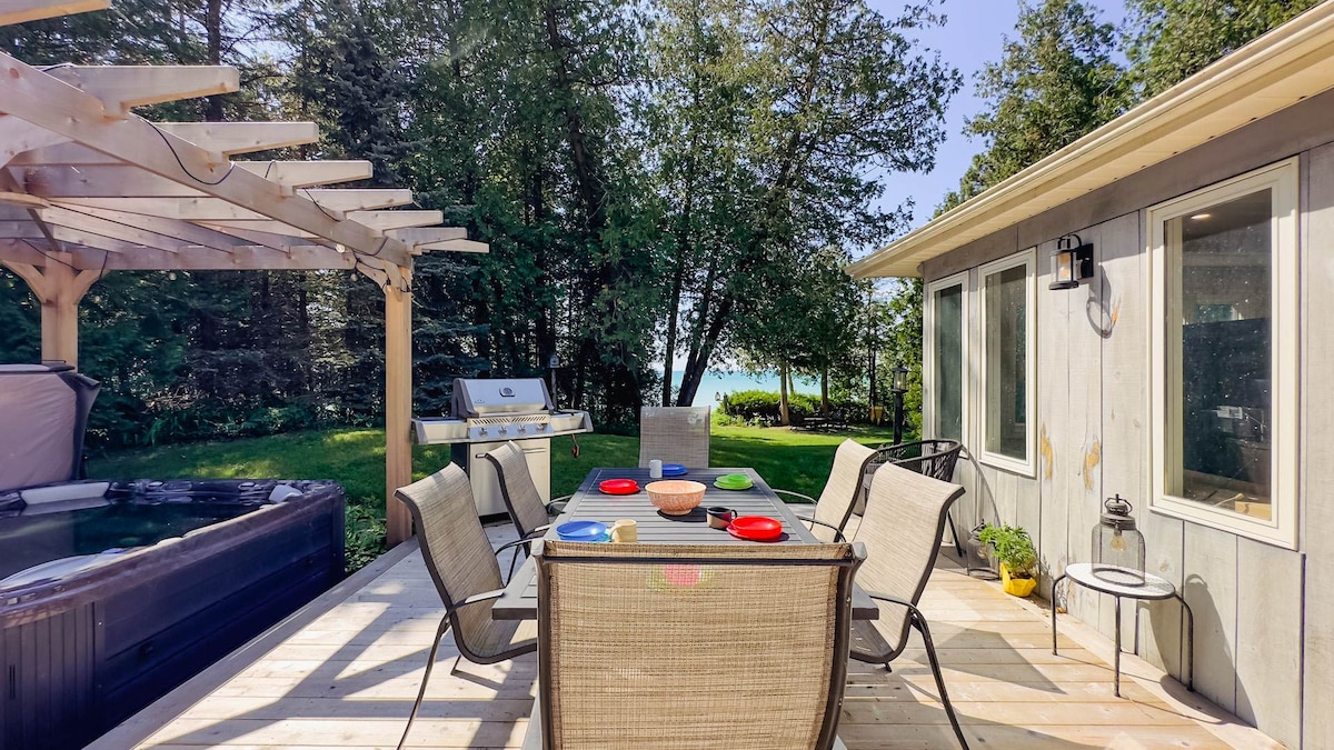 A wonderful gem tucked amongst the trees on a stunning stretch of the Lake Huron coast. Views of the water could easily be enjoyed from the full wall of windows, and the hot tub, fire pit and beach chairs all encouraged lounging and relaxing. Kincardine's bustling core of restaurants and shops is a short drive away. We loved our stay.