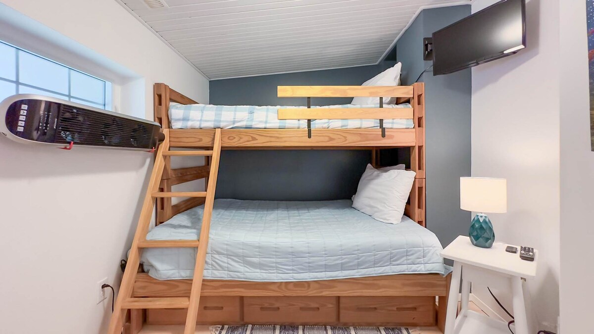 BR2 has a single over double bed along with a TV with HDMI cable so you can plugin your own device.