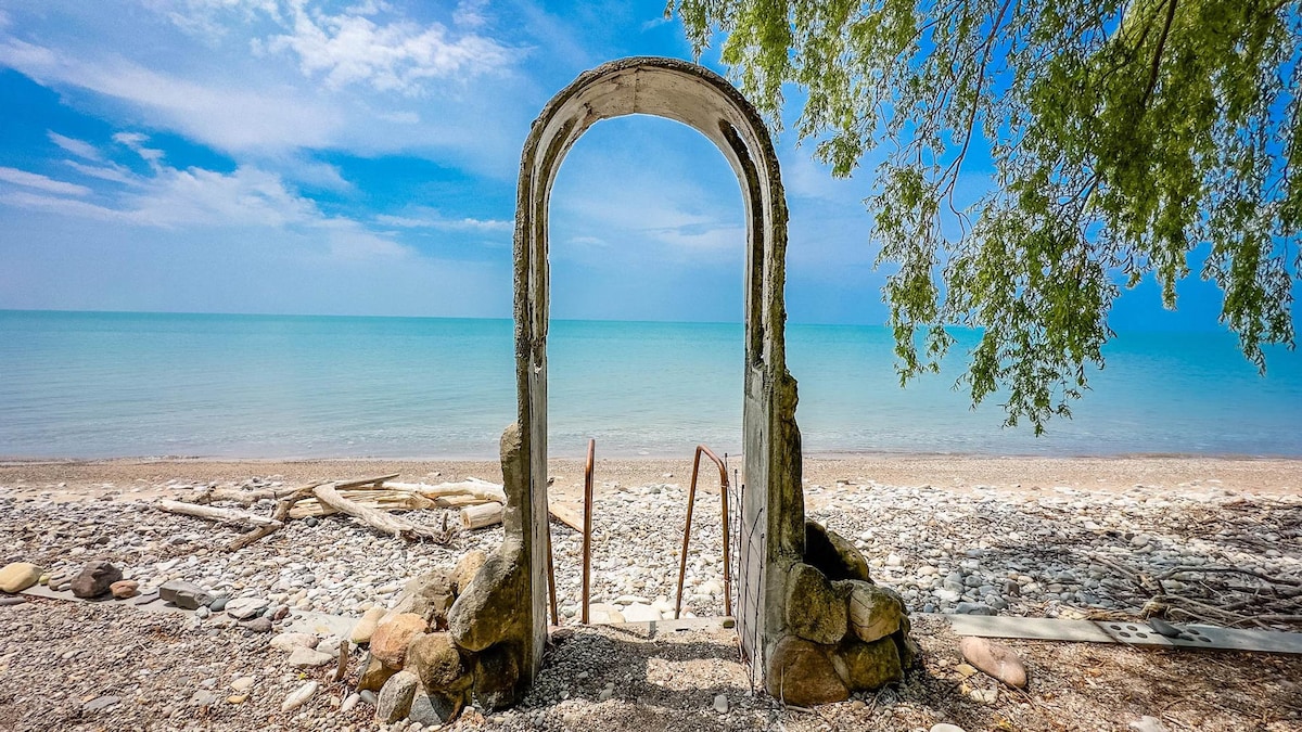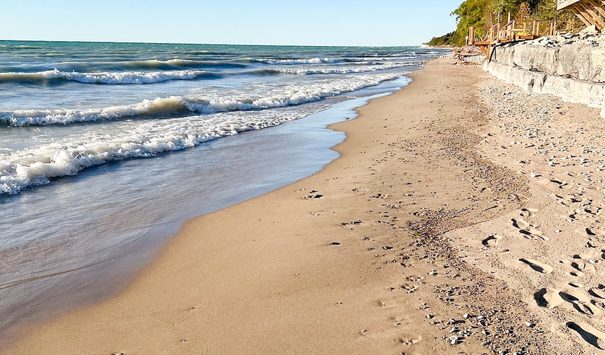 NOTE: Approx 60 stairs down your private access to the beach. The lakebed can be sandy or stoney depending on what the lake gives you that day. But it sure is fun to try to find the ever changing sandbars. Generally you will find sand 3ft out. It's fun to go stone collecting - Lake Huron is a geologists paradise! Just bring some water shoes. The nice thing is, it's not weedy or slimy at all.