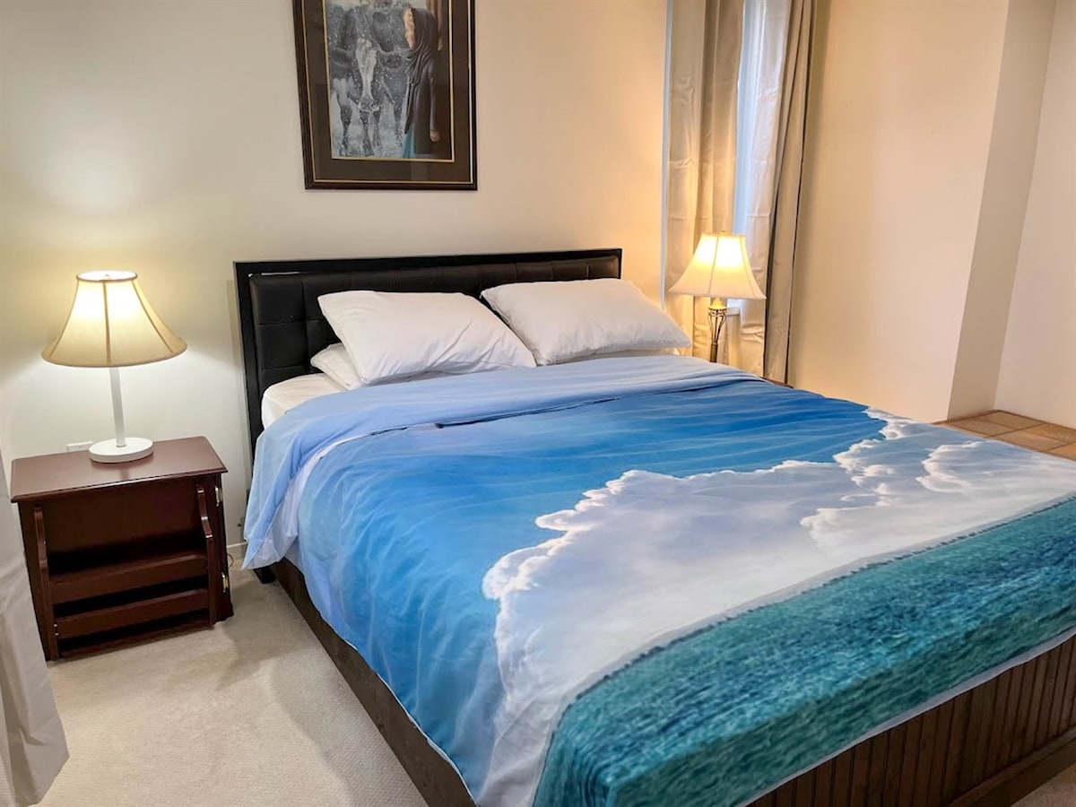 Bedroom 1:Queen bed with private bathroom. Overlooks the beautiful lake.