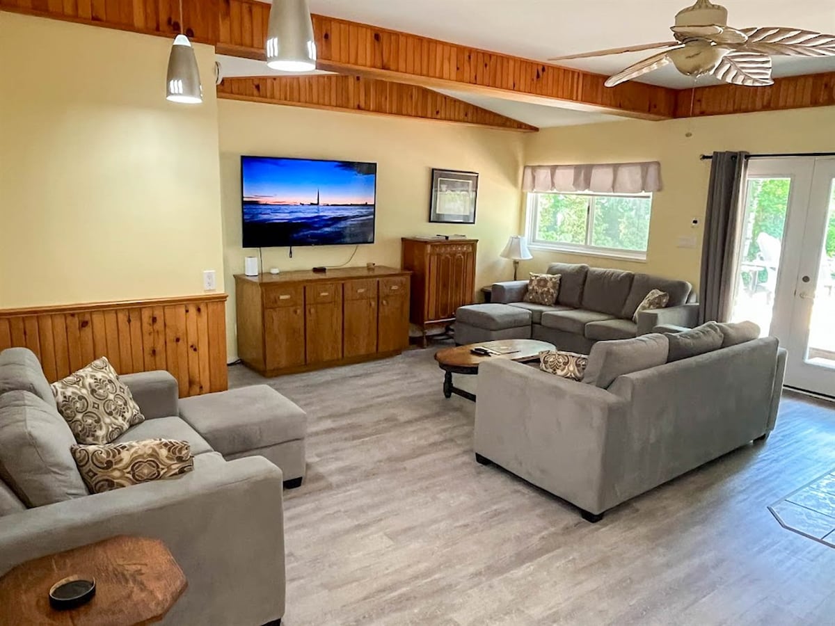 Go for a round of golf, or a bite to eat, at the White Squirrel Golf Club across the road. Later, BBQ in the spacious backyard and take a short 10-min drive to shop at Bayfield's Main Street or explore Grand Bend. Whether you're here to whisk the family away for a summer holiday, or inspire your team before a big deadline, or meditate in a calm environment—Bluewater Sunset Cottage is the place for groups to reset, reflect, & recharge.INSIDE