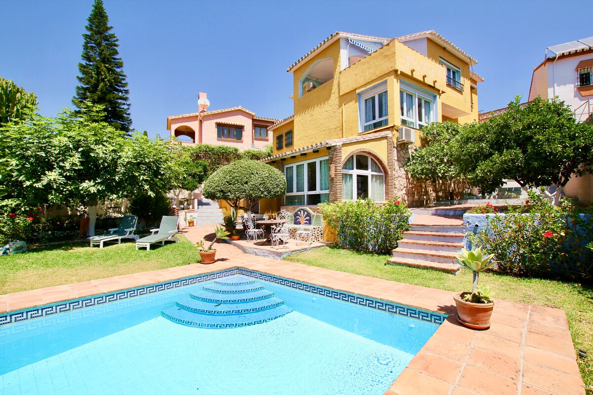 Separate entrance, full disinfection! Choose this house to be safe and secure. Comfortable and spacious 3-storey 4-bedroom holiday villa for rent in Benalmadena with garden with BBQ, close to all amenities. Holiday villa for rent in Benalmadena. Ref. 70263 Comfortable and spacious 3-storey 4-bedroom holiday villa for rent in Benalmadena. Situated in a secure area with garden with BBQ, close to all amenities. Panoramic views from the terrace.