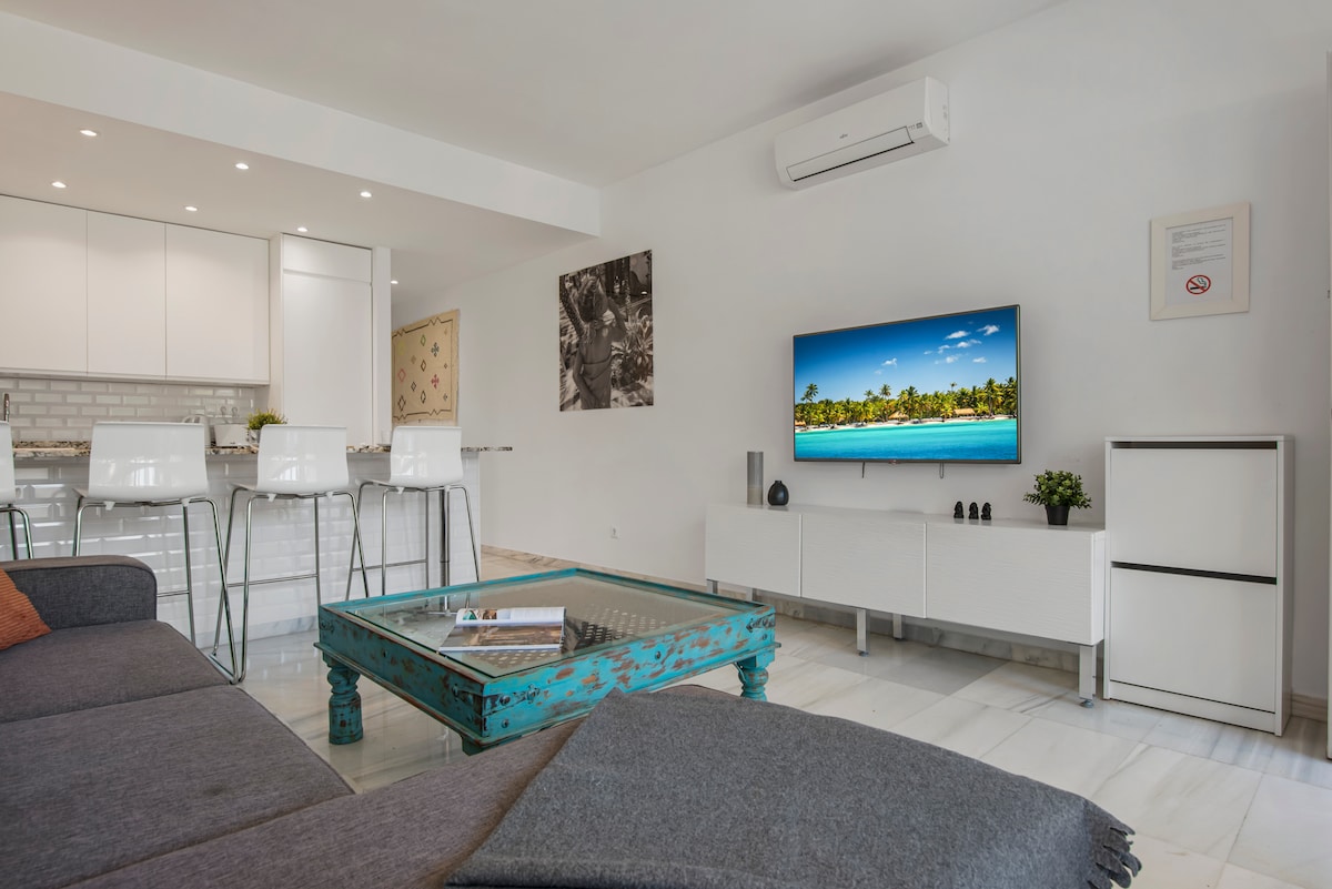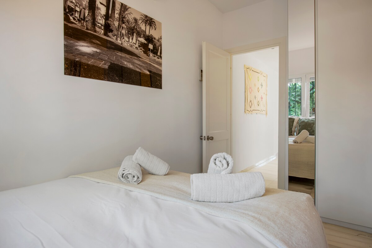 Holiday apartment nestled in the second line of Puerto Banus, perfect for families and friends seeking a unique retreat. Newly refurbished, this hidden gem accommodates up to 4 guests across 2 bedrooms, with a bathroom featuring an Italian shower and a spacious living area.